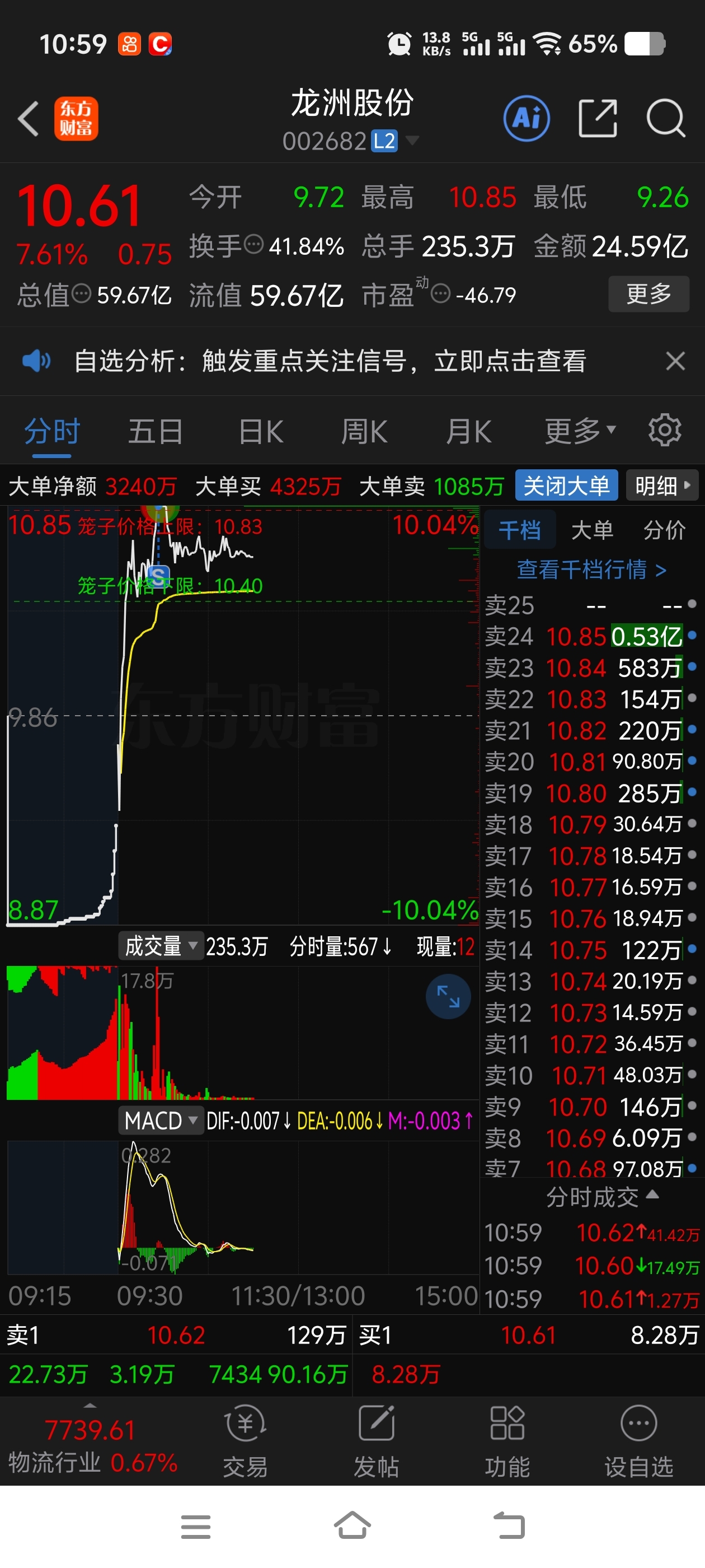 $龙洲股份(SZ002682)$ 卖出了,观望观望