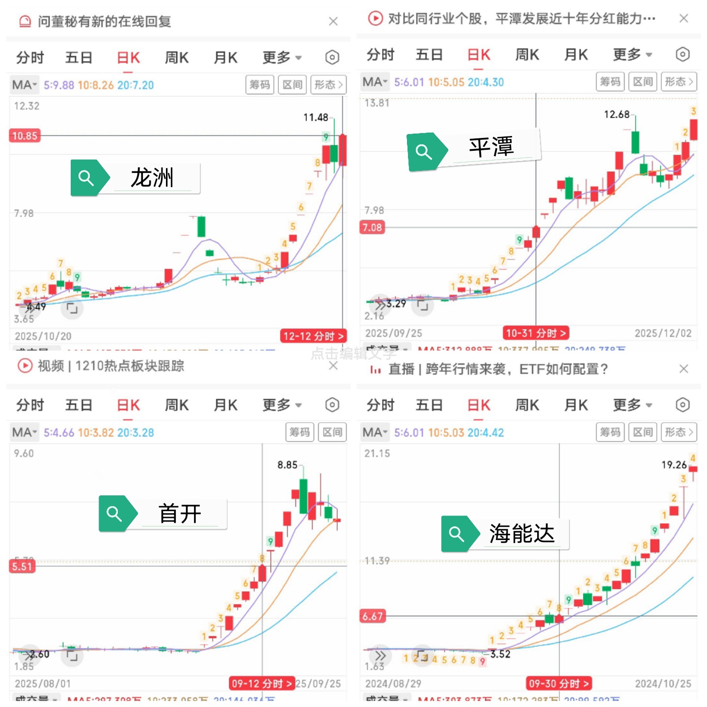 $龙洲股份(SZ002682)$ 兄弟们为何下面几张图↓总是惊人的相似,都是市场人气爆棚,都是两市总龙头,都是六、七板主动断板后反包,周末发酵一下,下周直接躺赢了