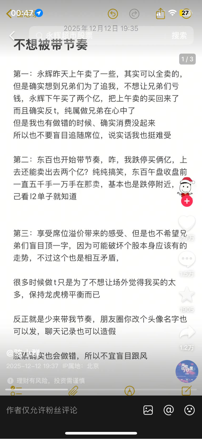 陈小群抖音解释了为什么看了陈小群刚刚发的抖音泪奔啊,为了散户最有格局的顶级游资