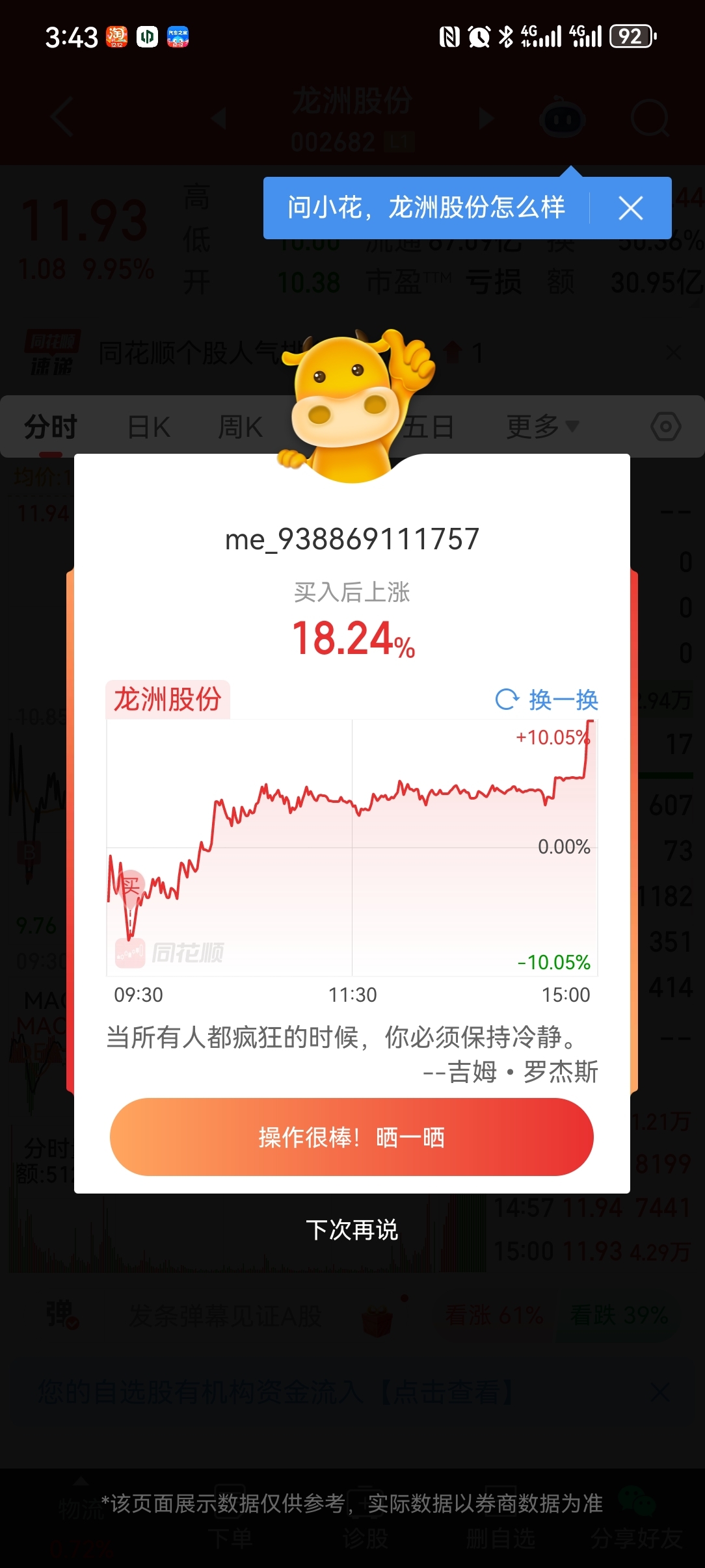 $龙洲股份(SZ002682)$ 好日子过在今天了,尾盘抢跑不是好事情,估计明天地板开了