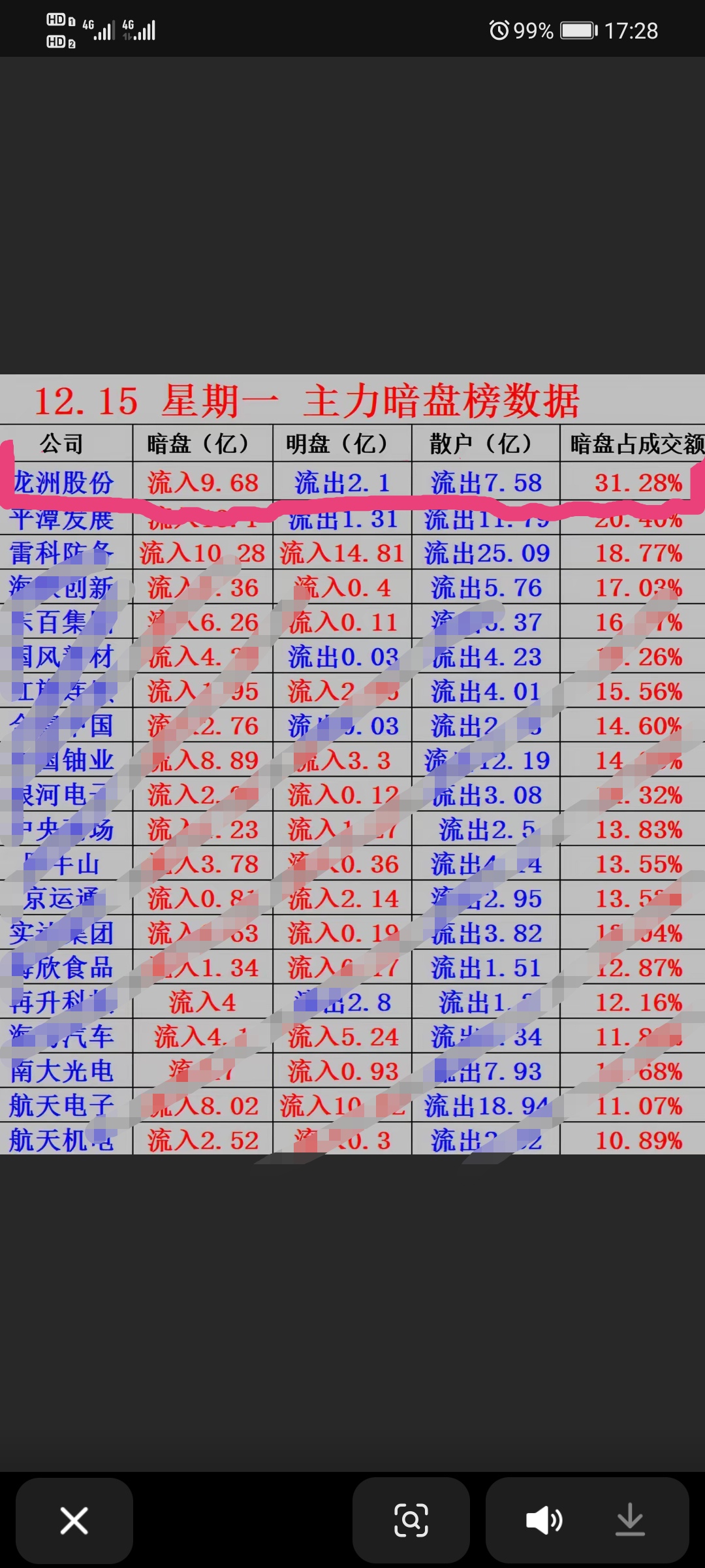 下图数据↓主力砸锅卖铁梭哈了占成交额31.28%,兄弟们今天龙王发威了,早盘很弱