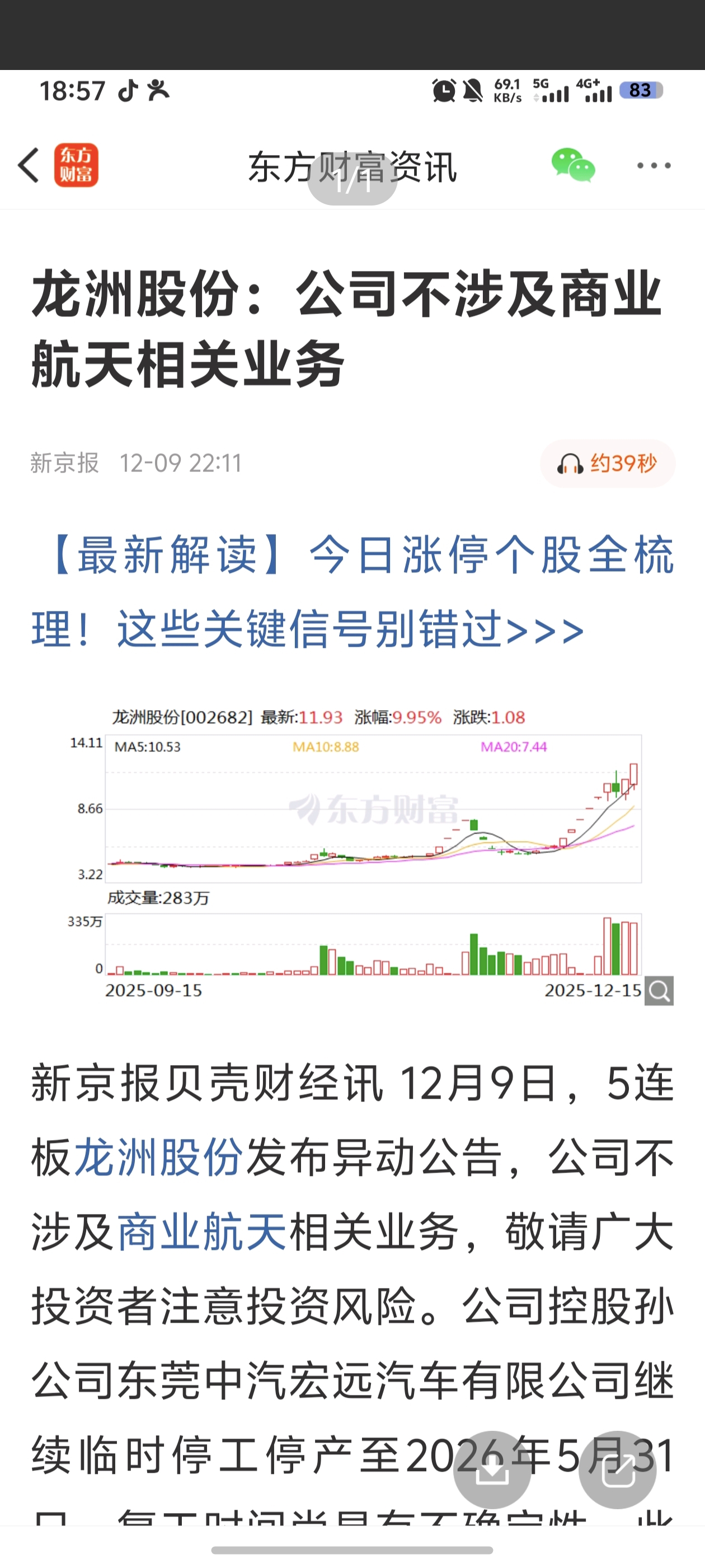 $龙洲股份(SZ002682)$ 平潭又异动了,平潭都没死,他怎么死的了,走的就是福建板块,公司老早就说了没有商业航天方面的业务,看明天平潭咋个样了