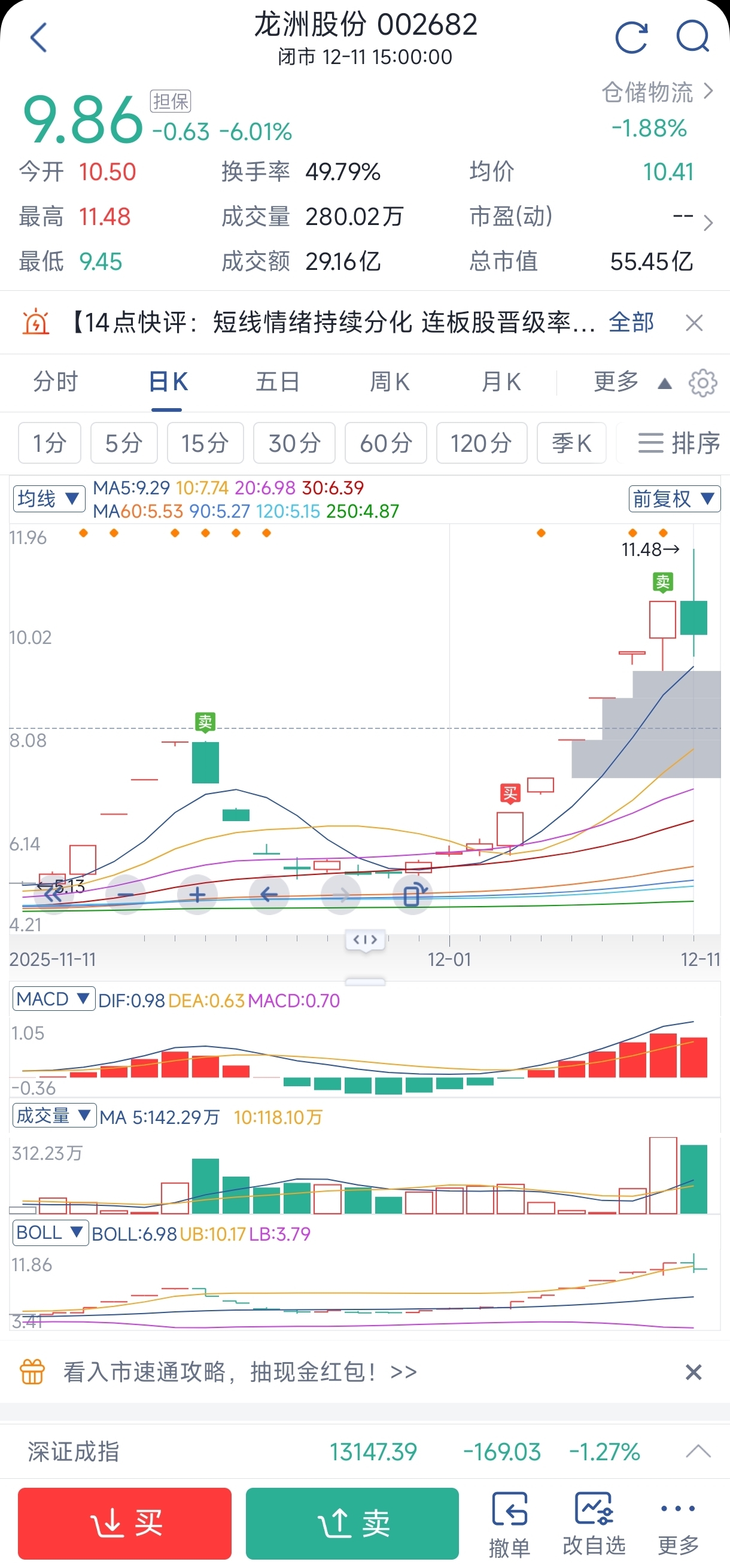$龙洲股份(SZ002682)$ 只为记录一下自己的操作