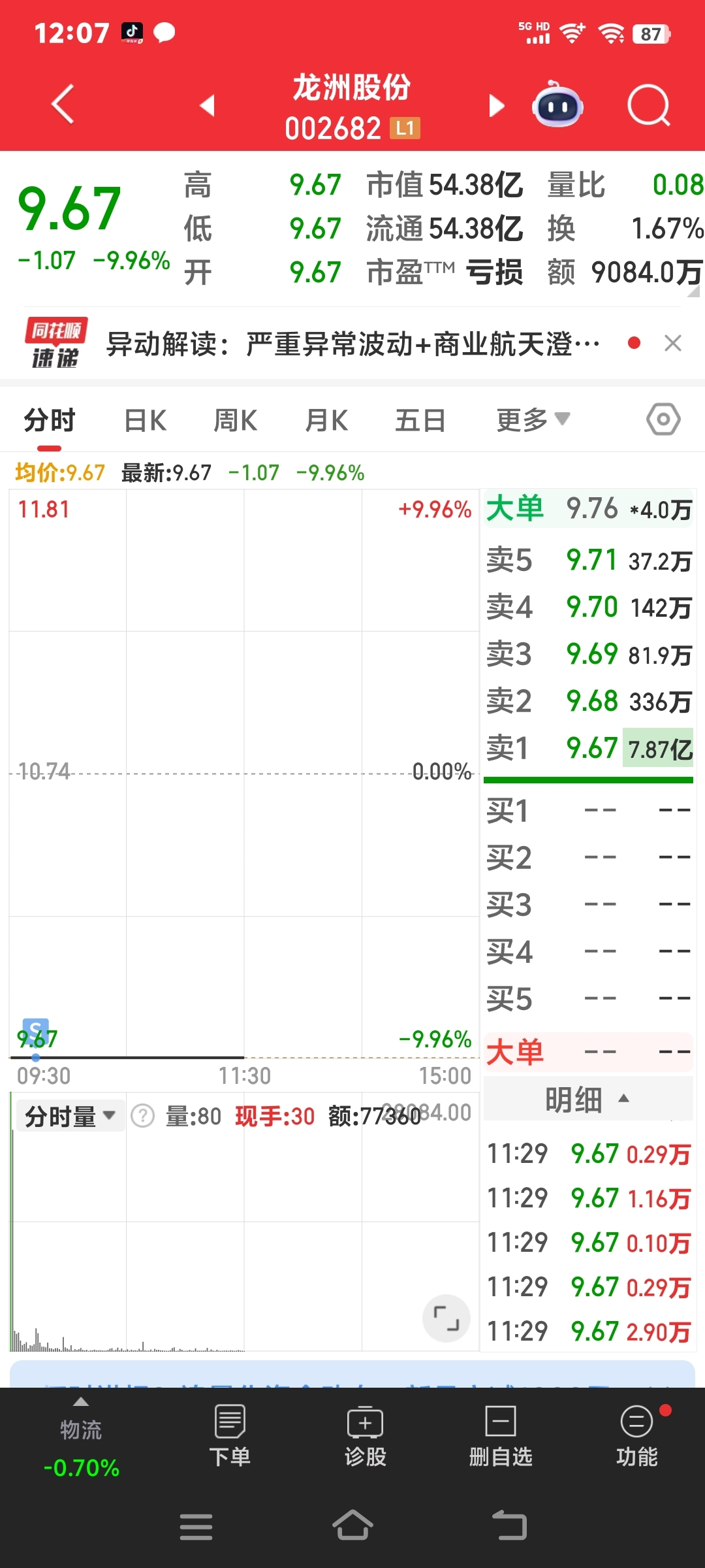 $龙洲股份(SZ002682)$ 东吴证券,昨晚7:35委托的,终于逃出去了