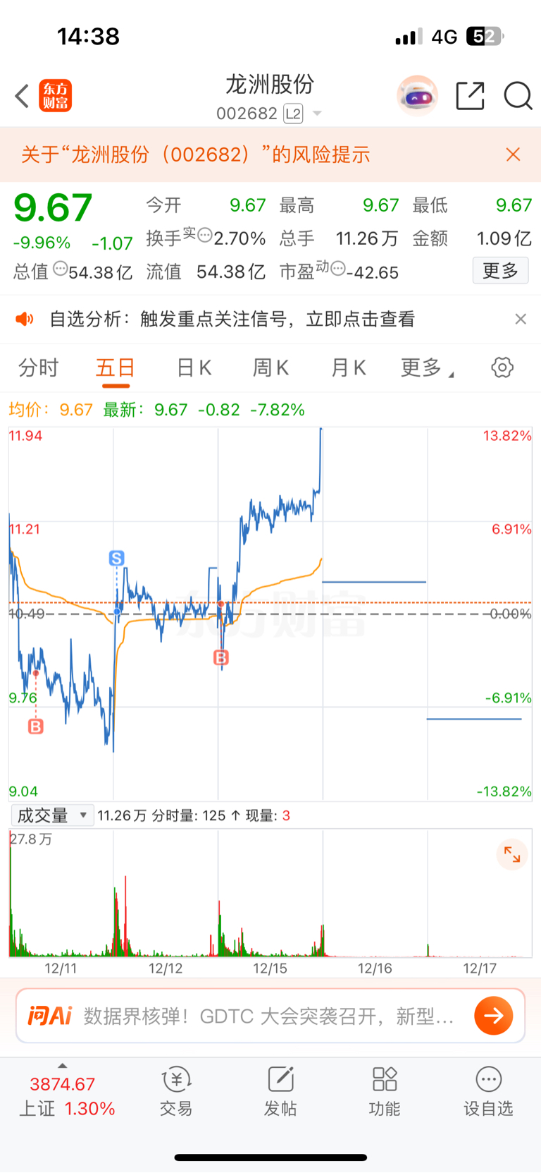 $龙洲股份(SZ002682)$ 今年不操作了 月底加仓 希望你跌5元去