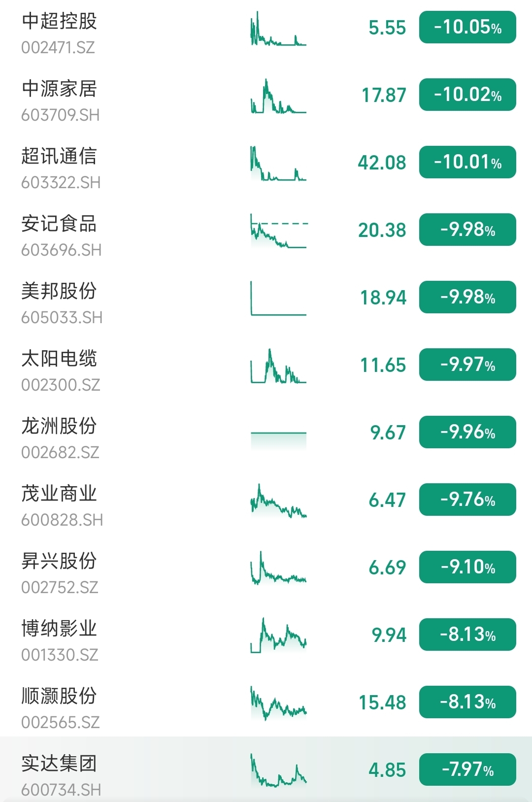 最惨的莫过于$龙洲股份(SZ002682)$ 俩一字,$中源家居(SH603709)$ 第三板,$美邦股份(SH605033)$ 昨天天地今天封的移动不动。还有 法尔胜骗了一天。也就再升和东百良心些。散会