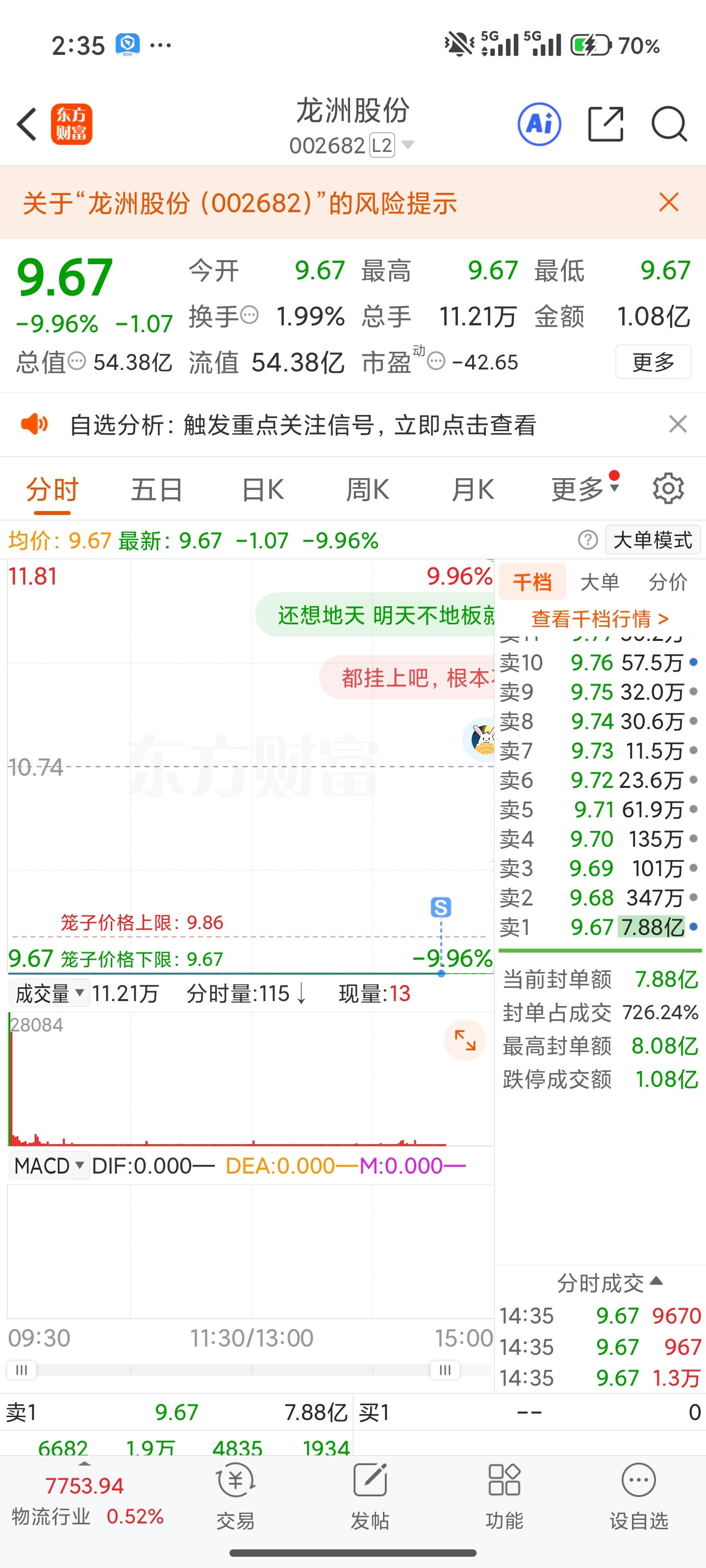 $龙洲股份(SZ002682)$ 终于跑掉了,