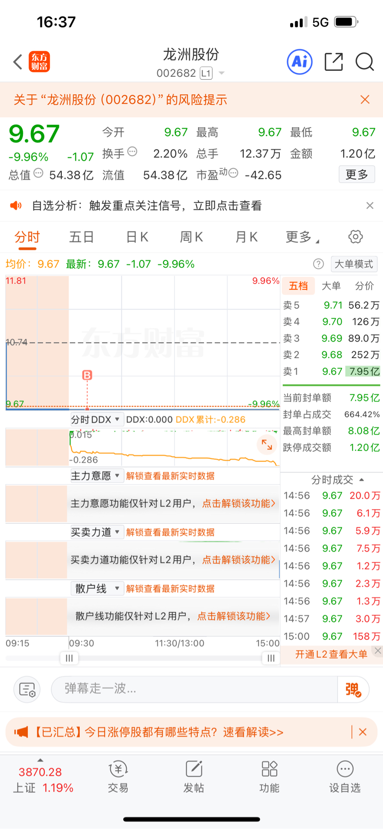 $龙洲股份(SZ002682)$ 今天没有翘板开,已经全仓了。