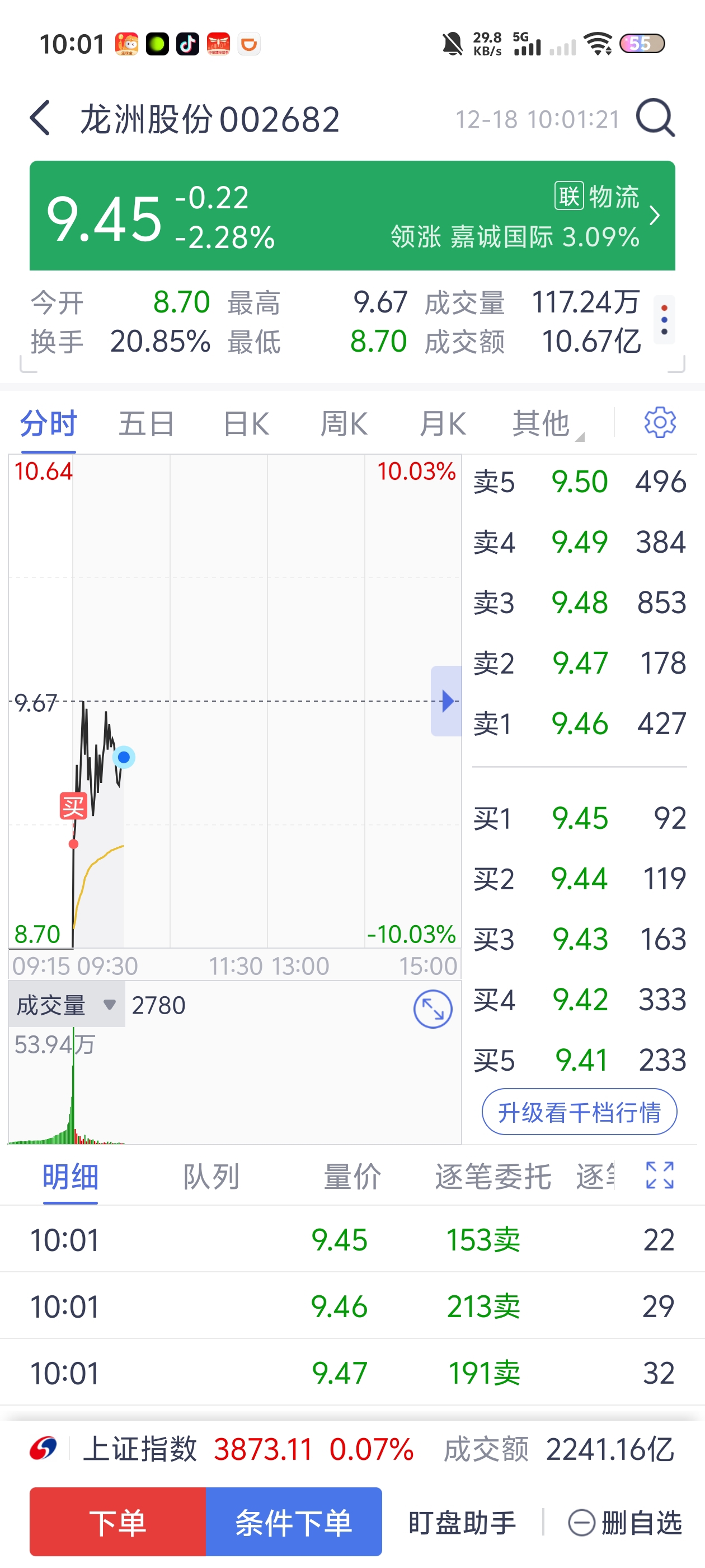 $龙洲股份(SZ002682)$ 8.7的本 能保住嘛