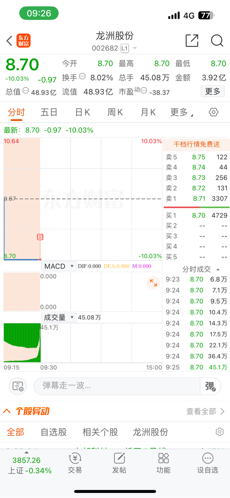 $龙洲股份(SZ002682)$ 漂亮,进场拿血筹