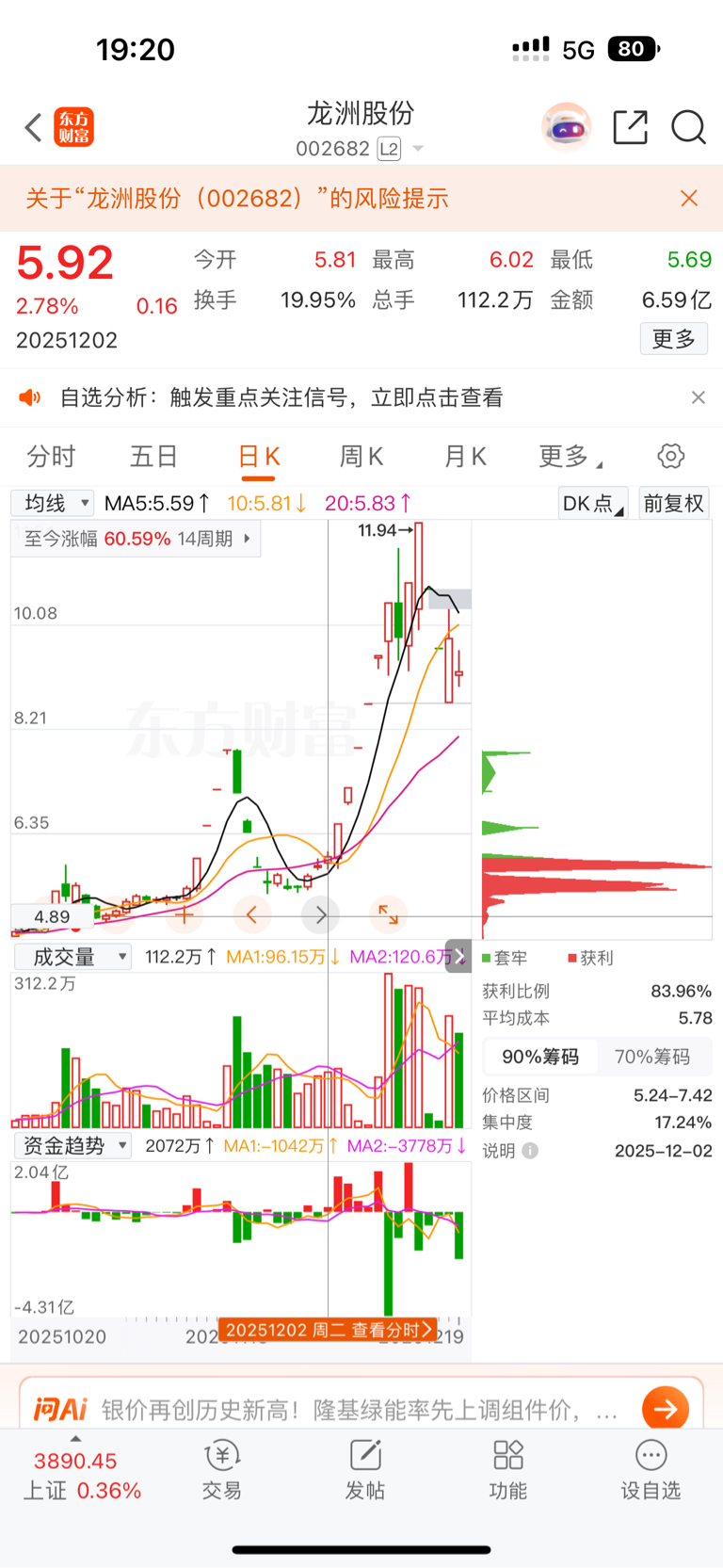 主力全部主力已经跑光了,完全没有承接资金,近5日也是资金连续流出状态,上分套牢盘