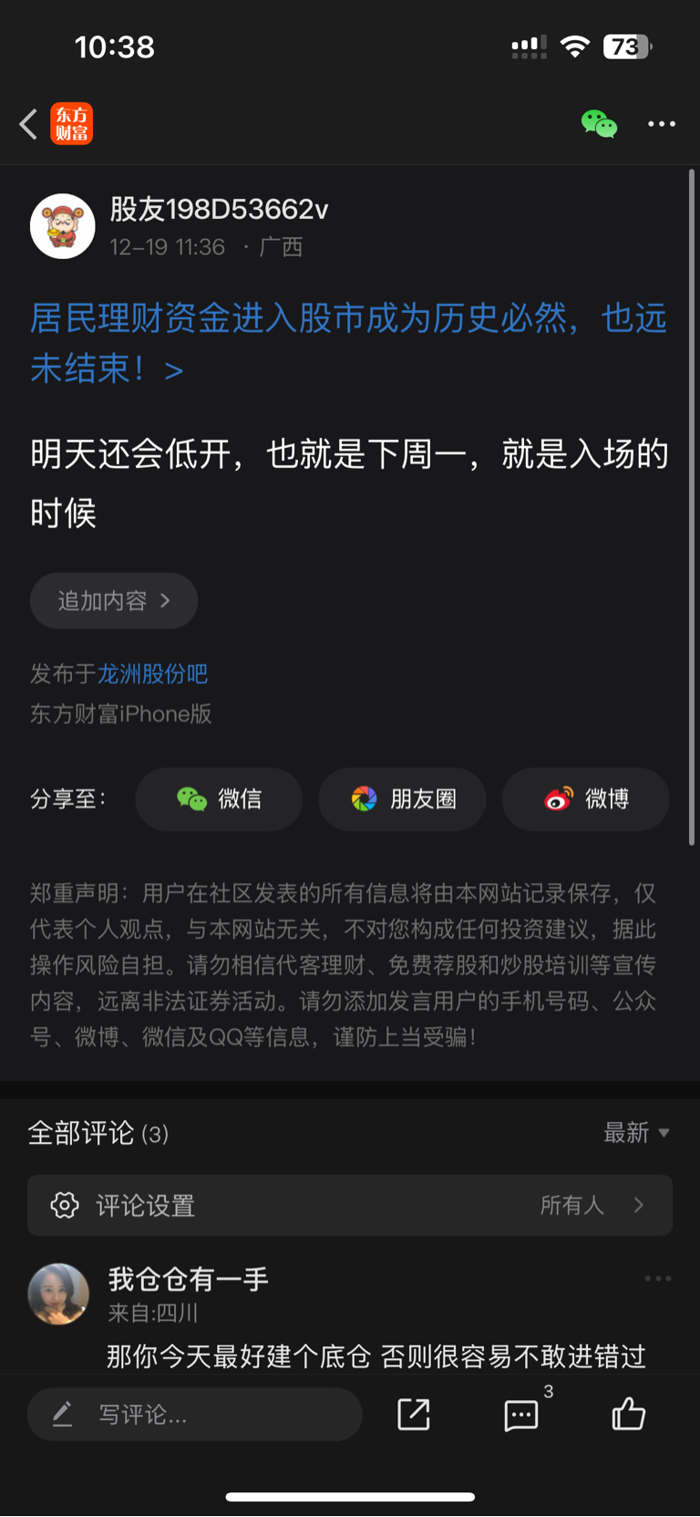温馨提示: 1.根据《证券法》规定,禁止编造、传播虚假信息或者误导性信息,扰乱证券市场;2.用户在本社区发表的所有资料、言论等仅代表个人观点,与本网站立场无关,不对您构成任何投资建议。用户应基于自己的独立判断,自行决定证券投资并承担相应风险。《东方财富社区管理规定》