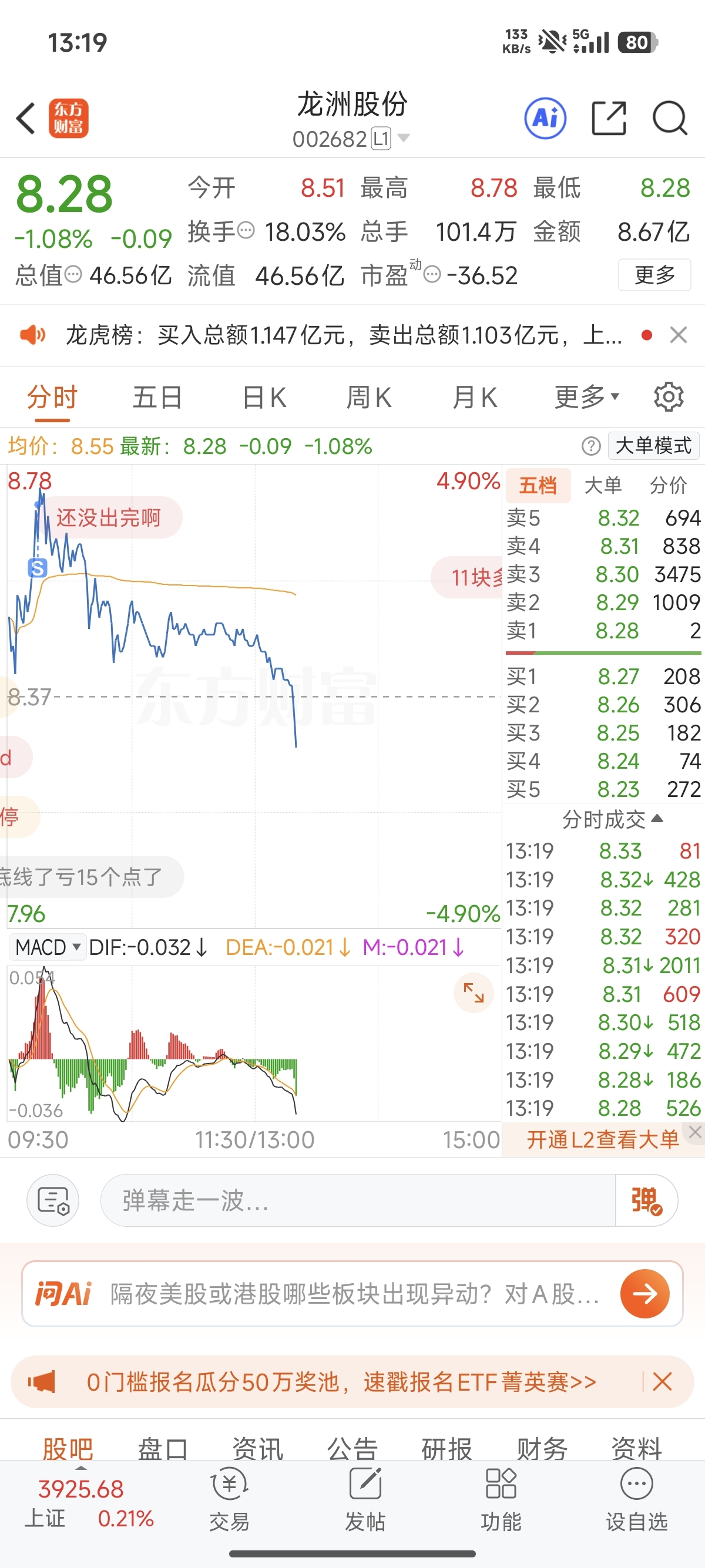 $龙洲股份(SZ002682)$ 昨天进,今天4个点走的,还好手速快