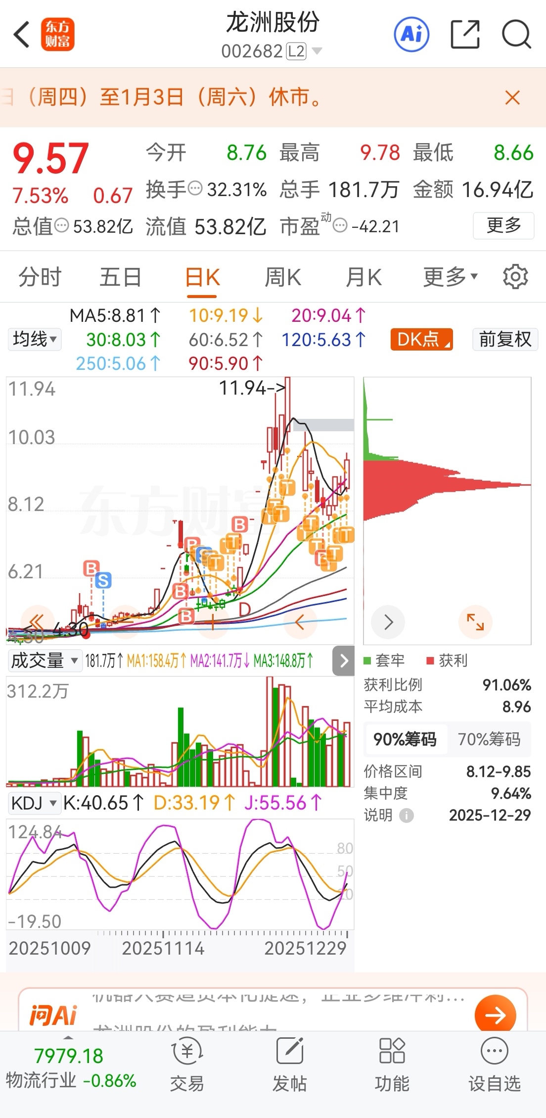 $龙洲股份(SZ002682)$ 不管你说涨停还是跌停,跌就加,反正就是干