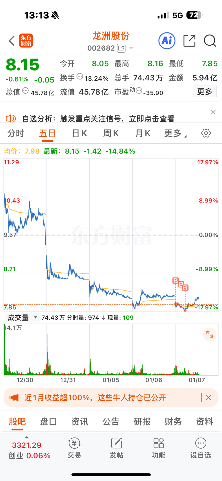 $龙洲股份(SZ002682)$ 今天喝汤,明天吃肉了家人们