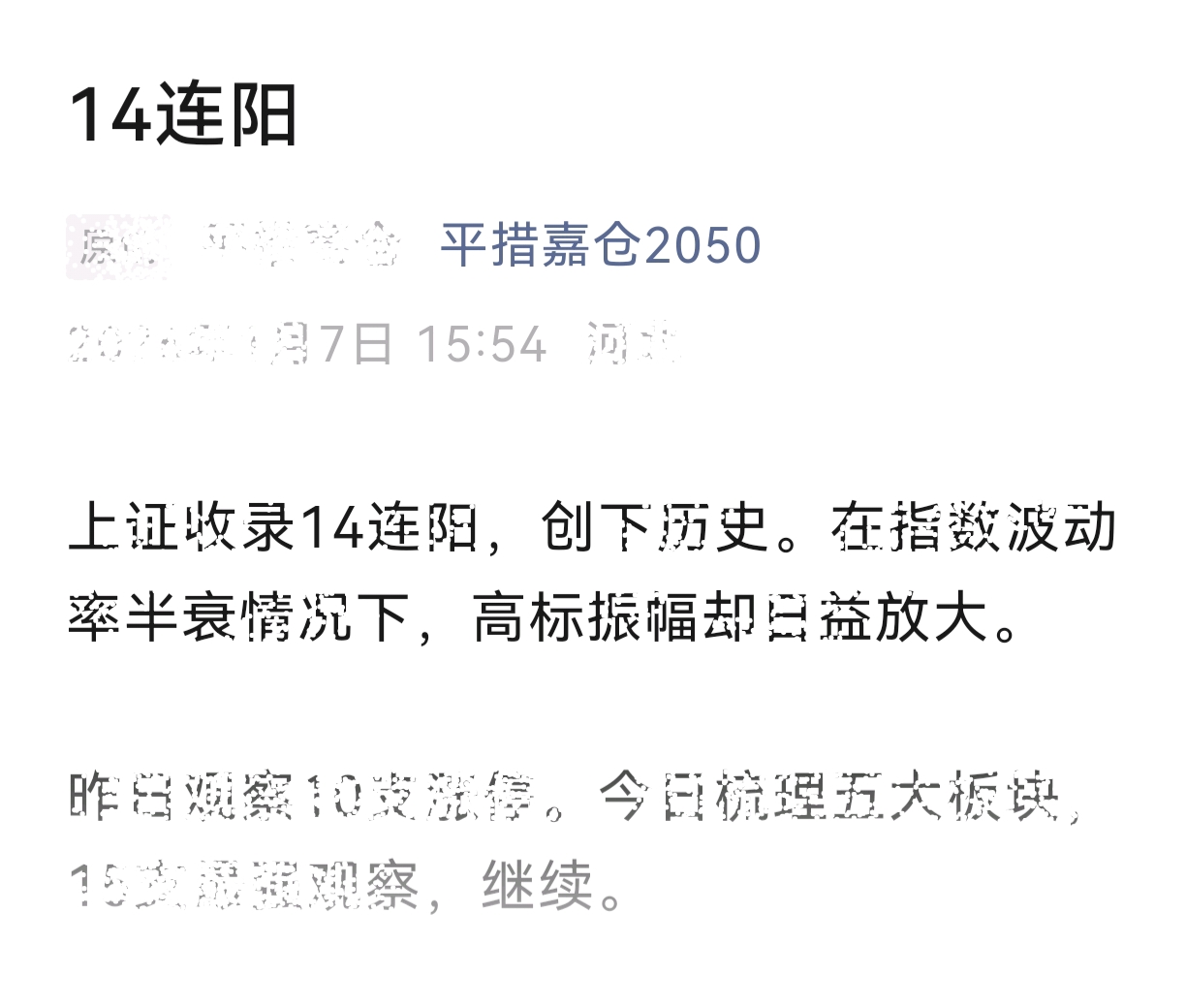 上证14连阳,两市持续放量。嘉美停牌,并没影响胜通一字版豪取14连。锋龙预告,并