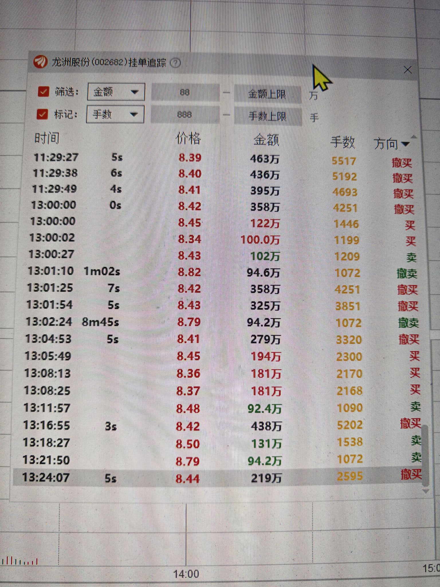 报告将军据我观察,以上撤买的应该是同一个人,每次单子吃不超过500手就撤掉