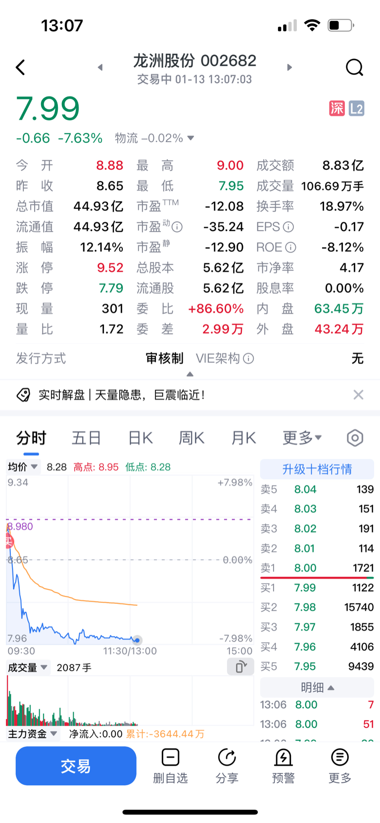 $龙洲股份(SZ002682)$ 早盘竞价进的