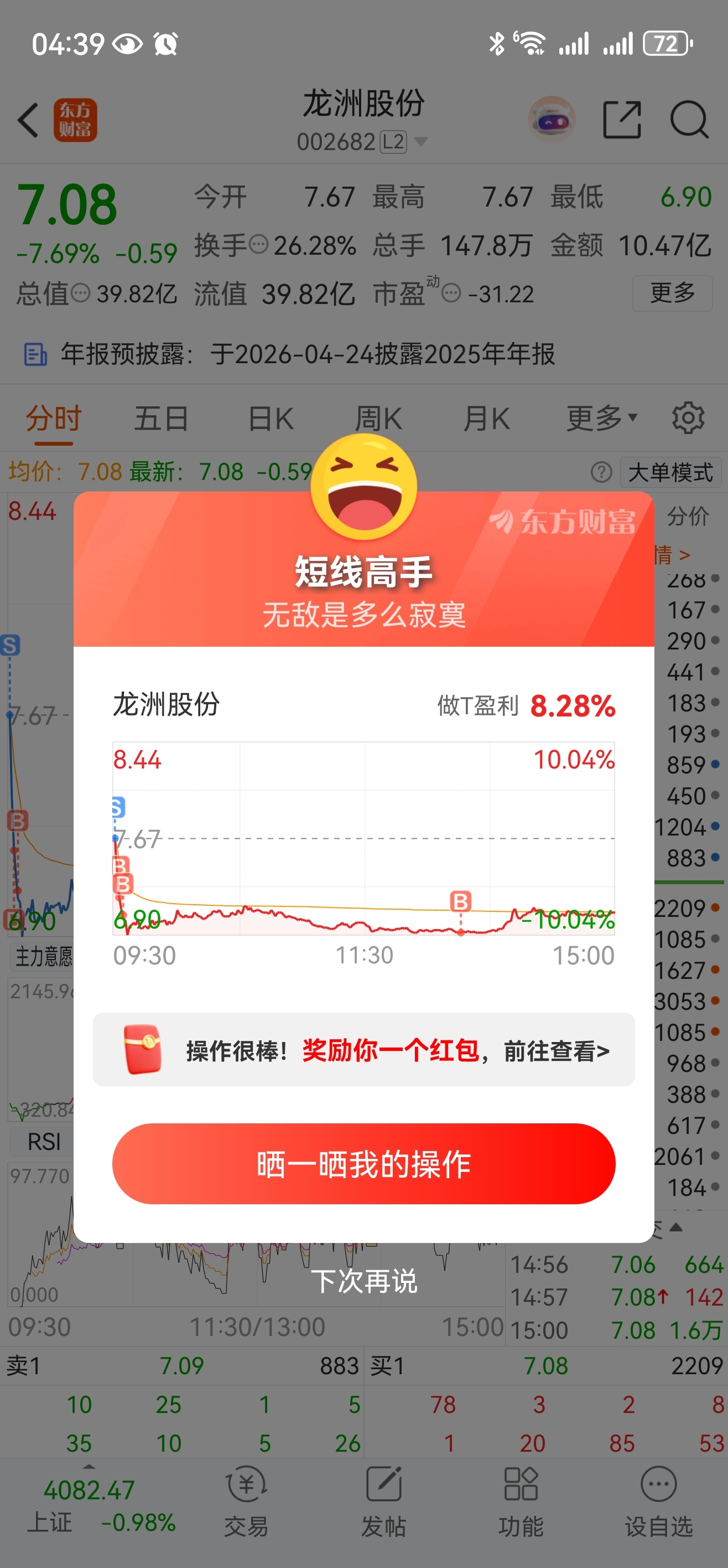 $龙洲股份(SZ002682)$ 早上一帮发帖唱多的,现在删的干干净净
