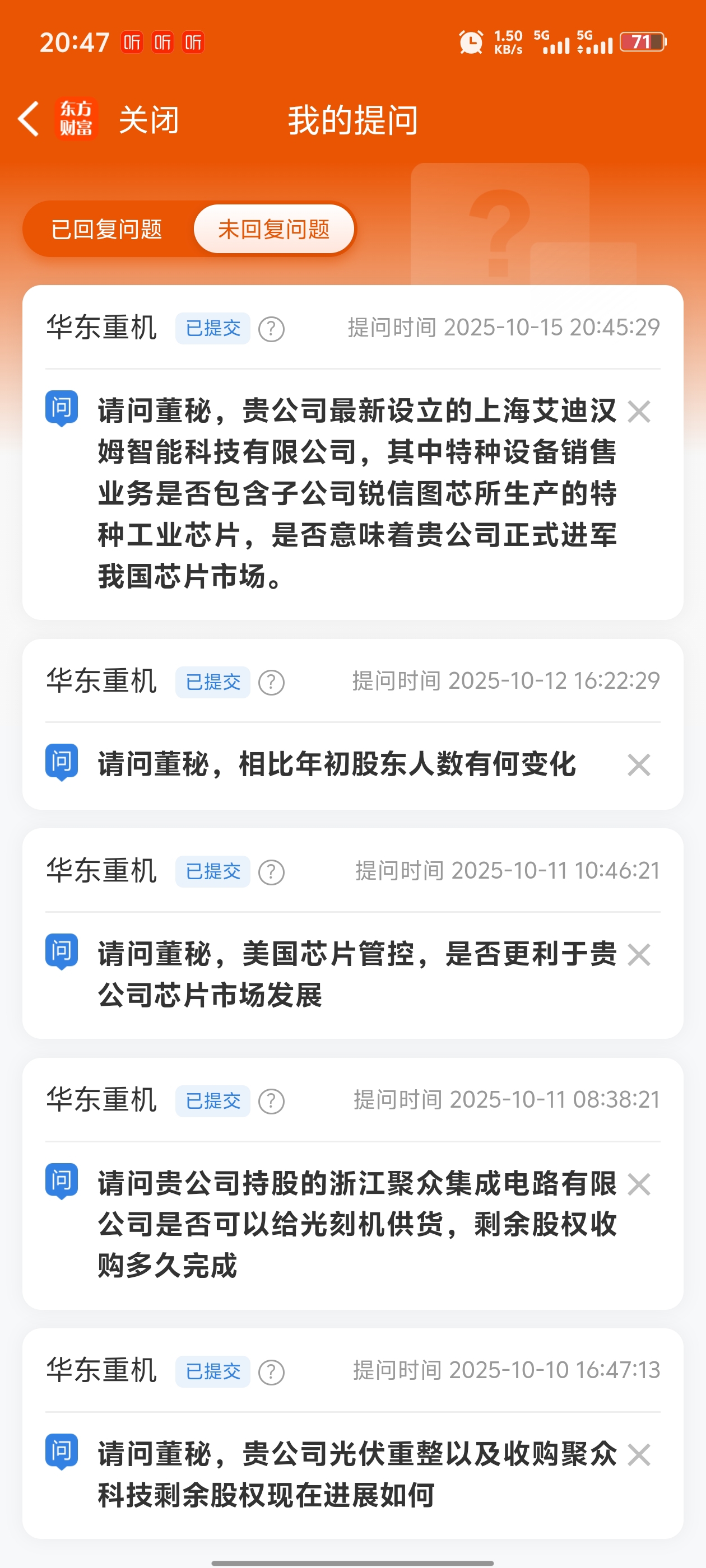 $华东重机(SZ002685)$ 我又来提问了
