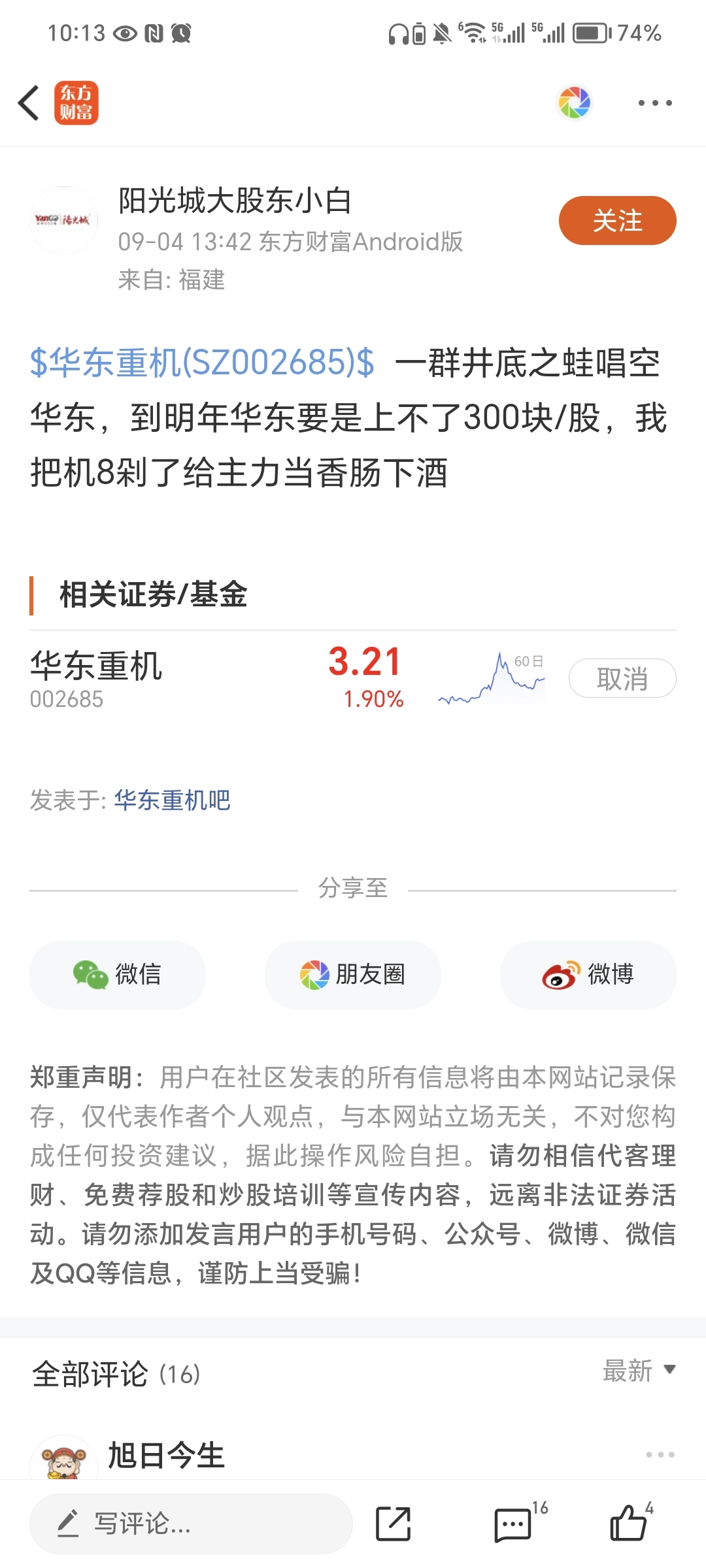 温馨提示: 1.根据《证券法》规定,禁止编造、传播虚假信息或者误导性信息,扰乱证券市场;2.用户在本社区发表的所有资料、言论等仅代表个人观点,与本网站立场无关,不对您构成任何投资建议。用户应基于自己的独立判断,自行决定证券投资并承担相应风险。《东方财富社区管理规定》