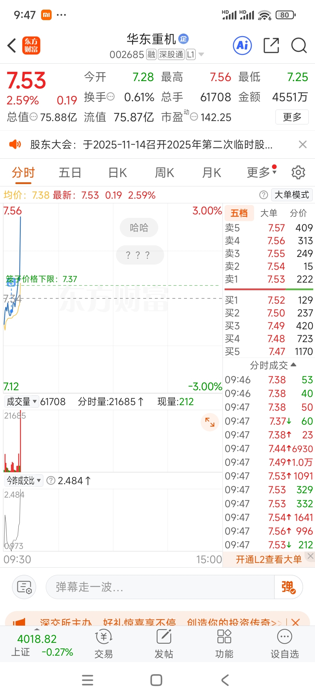 $华东重机(SZ002685)$ 老天爷,割肉就上涨