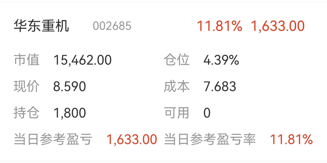 $华东重机(SZ002685)$ 买少了 居然涨停了