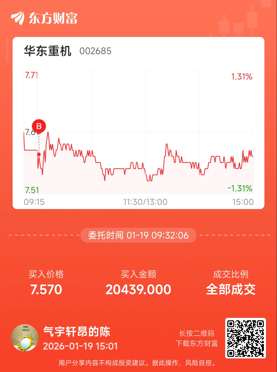 温馨提示: 1.根据《证券法》规定,禁止编造、传播虚假信息或者误导性信息,扰乱证券市场;2.用户在本社区发表的所有资料、言论等仅代表个人观点,与本网站立场无关,不对您构成任何投资建议。用户应基于自己的独立判断,自行决定证券投资并承担相应风险。《东方财富社区管理规定》