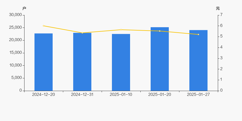 2024年12月20日至今,公司股东户数有所增长,区间涨幅为5.86%。2024年12月20日至2025年1月27日区间股价下降13.31%。