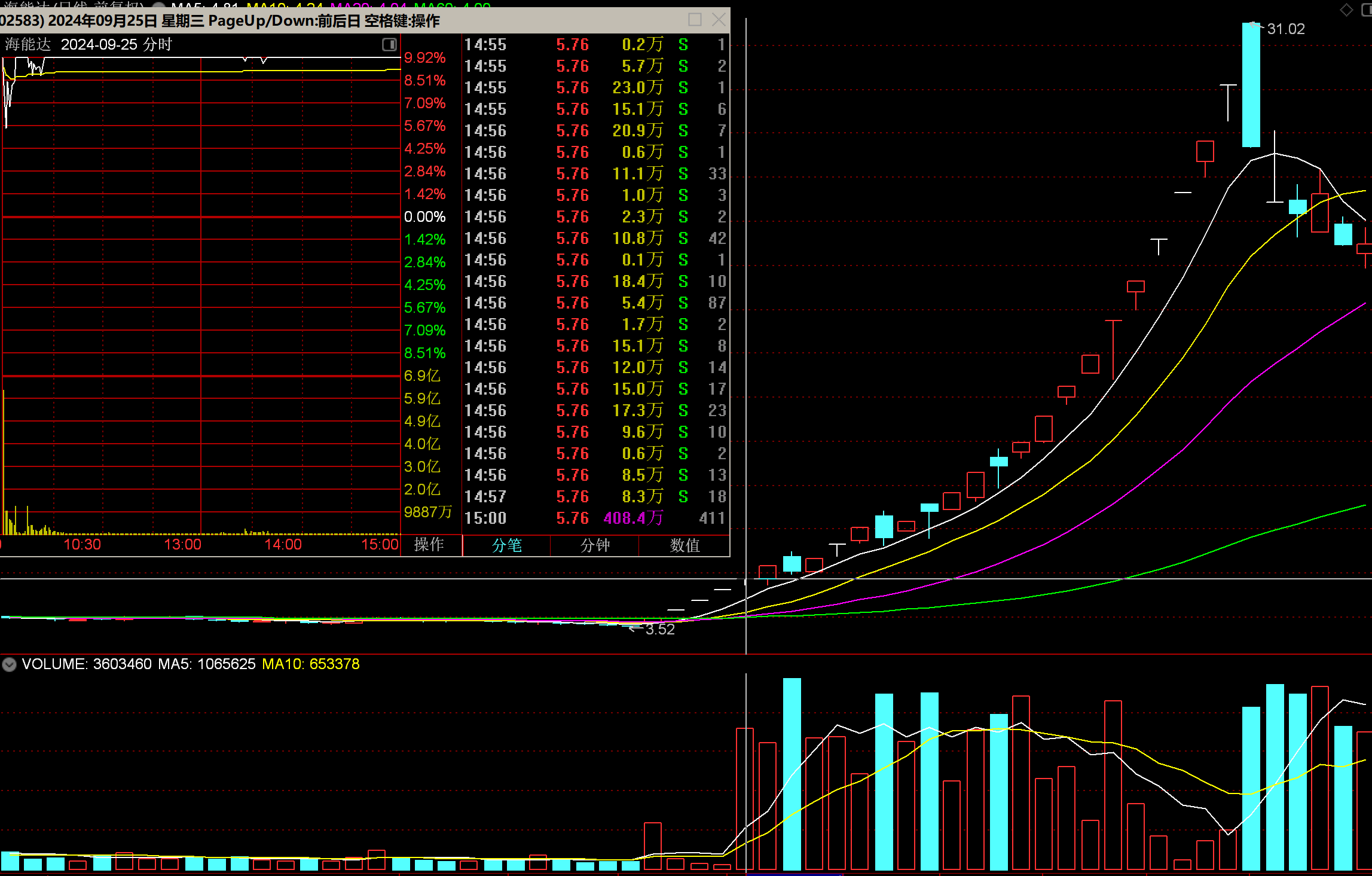 怕炸板的来看看海能达开始阶段的走势,看看量价是不是和今天的亿利达很相似!有人说我刻舟求剑,那么如果真的运气好逮到妖股呢?
