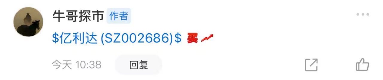 $亿利达(SZ002686)$ $大有能源(SH600403)$ 惊喜已给到你们!机会永远给到相信我的股友这段时间天涨停板拿到手软,牛哥说到做到玩的就是真实,是不会辜负每一位粉丝朋友滴