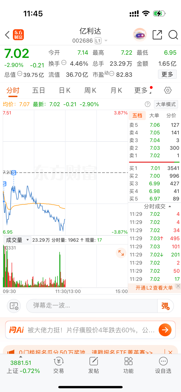 $亿利达(SZ002686)$ 我以为我卖错了