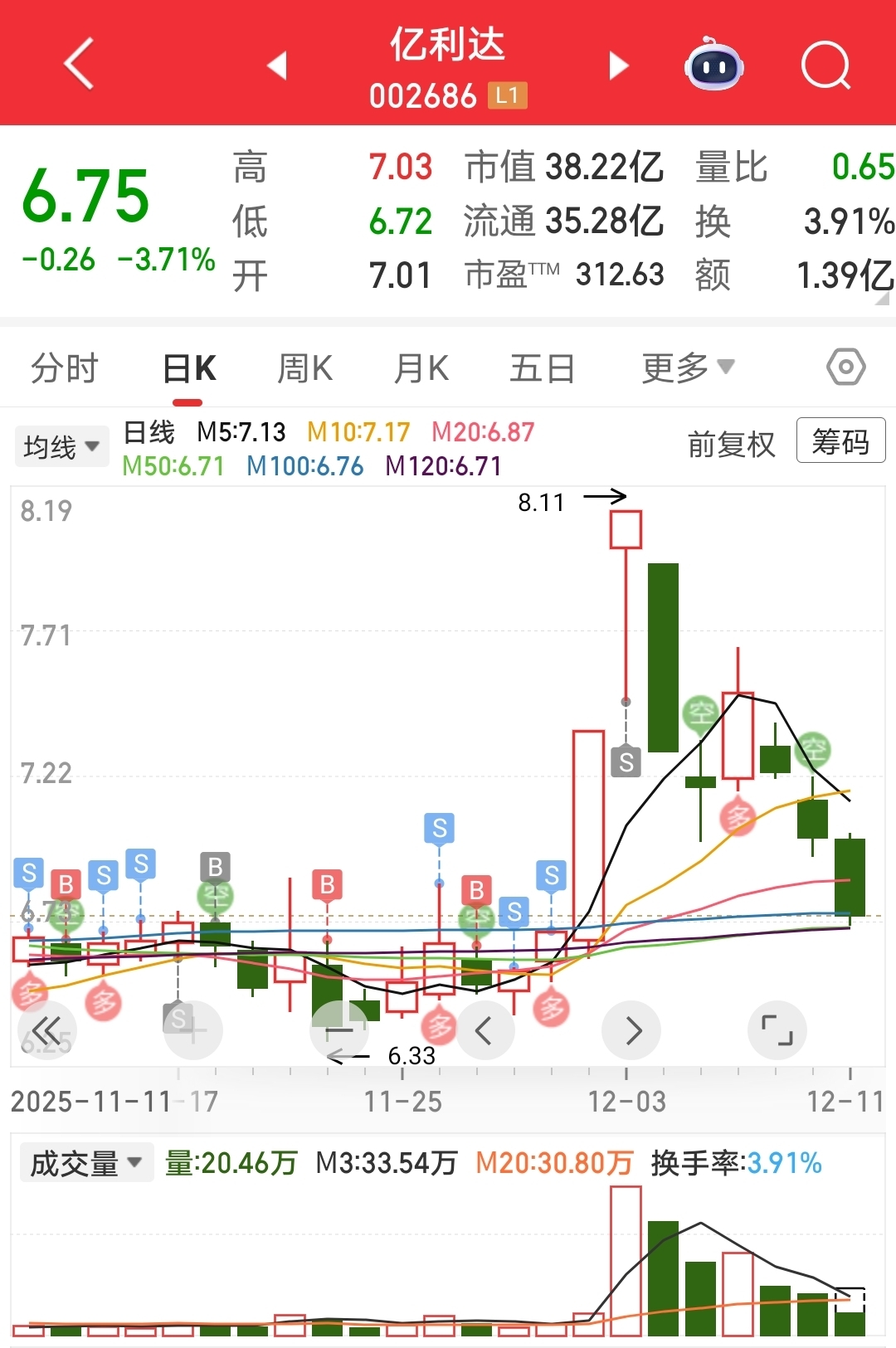本来是准备6.70抄底的……但是我看大家都不想卖……那我就只能干等着喽…………