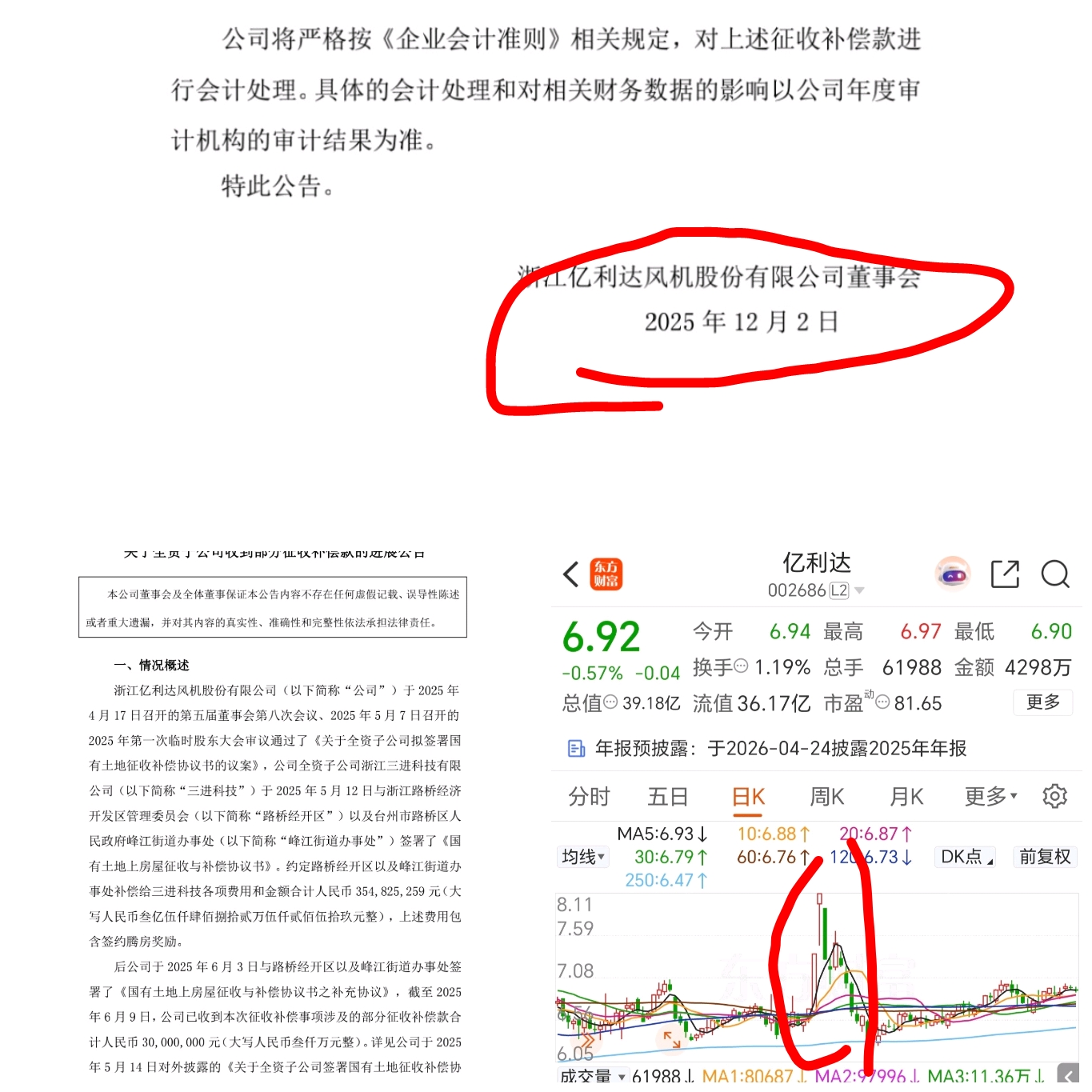 $亿利达(SZ002686)$ 早一天也不拉升,拆迁款公告前一天拉升,拆迁款公告出来,做空砸盘