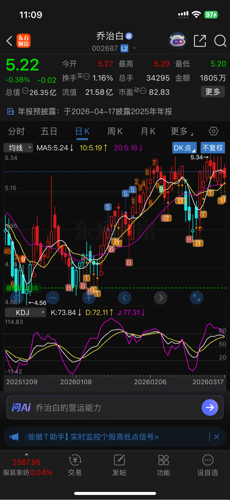 $乔治白(SZ002687)$ 一直冲不上5.34,又要慢慢熬了,唉……
