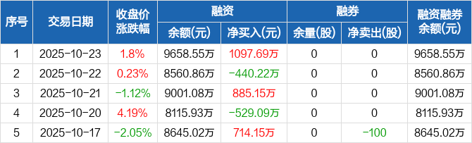 远大智能:融资净买入1097.69万元,融资余额9658.55万元(10-23)