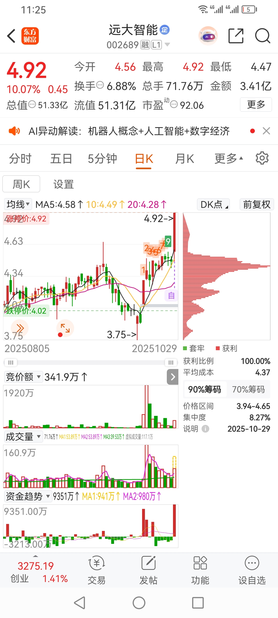 军哥,远大智能首板3成仓位