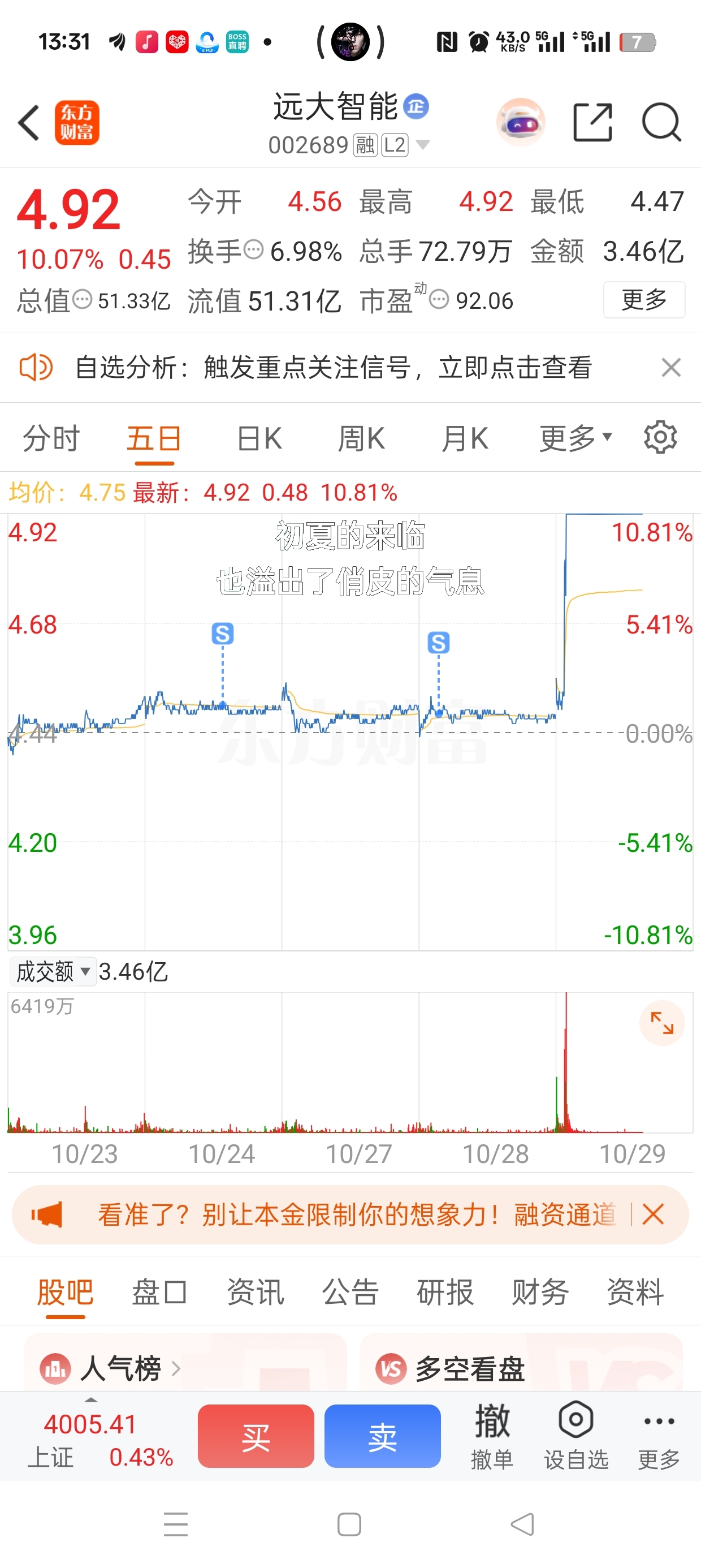$远大智能(SZ002689)$ nnnd的,我卖了你就拉涨停,