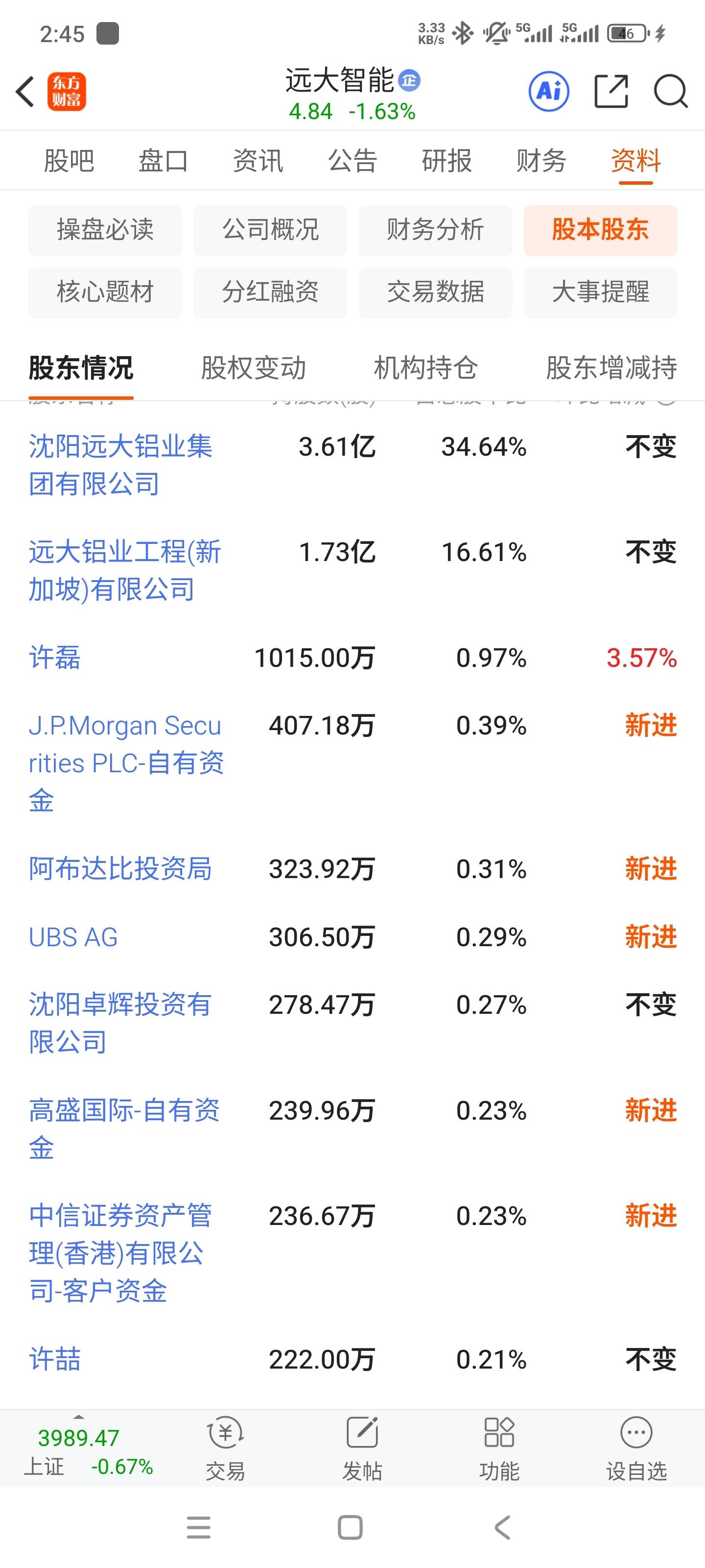 没人提还真没关注,今天股东换几个外国公司了,怕不是来A股价值投资的吧