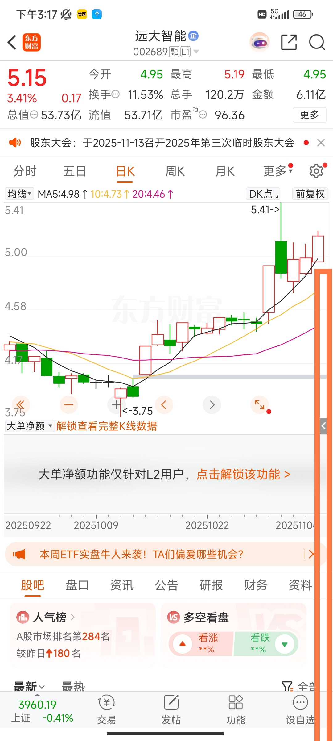 $远大智能(SZ002689)$ 我预测下明天走势。低开低走 尾盘跌停。 今天很明显的 主力资金在对倒出货。