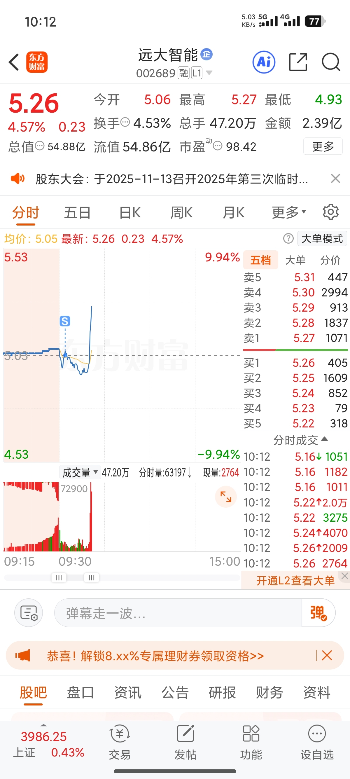 $远大智能(SZ002689)$ 大哥呀,我下车了。