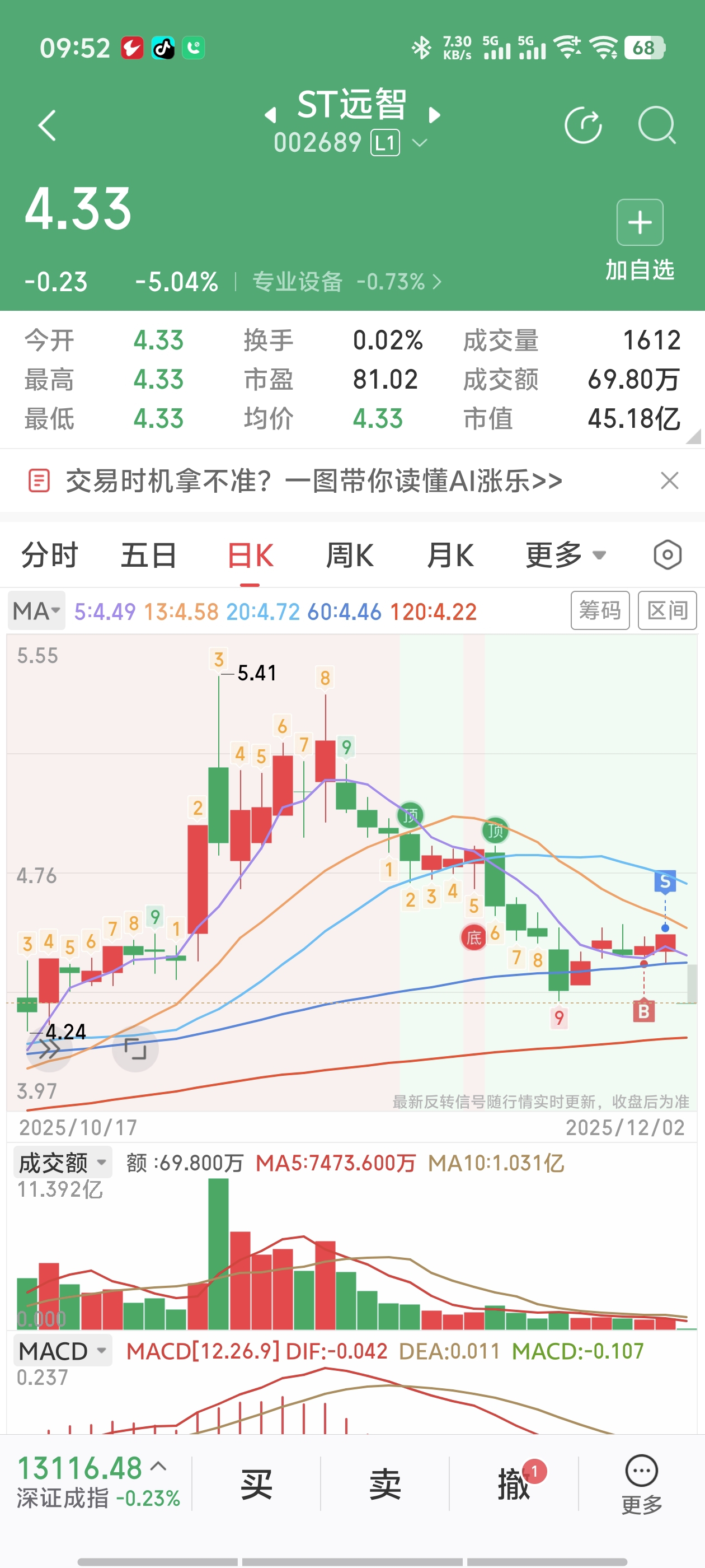 $ST远智(SZ002689)$ 我这是躲过一劫了啊