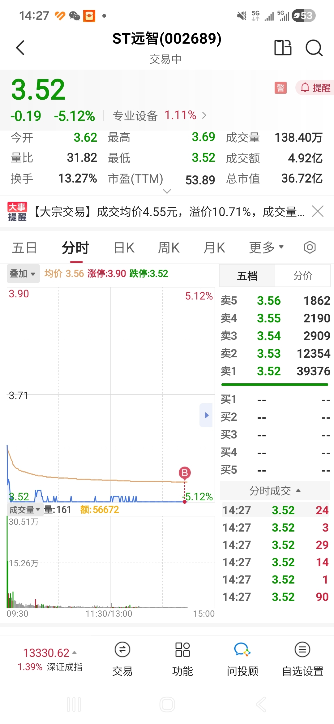 $ST远智(SZ002689)$ 建个底仓,看明天了。