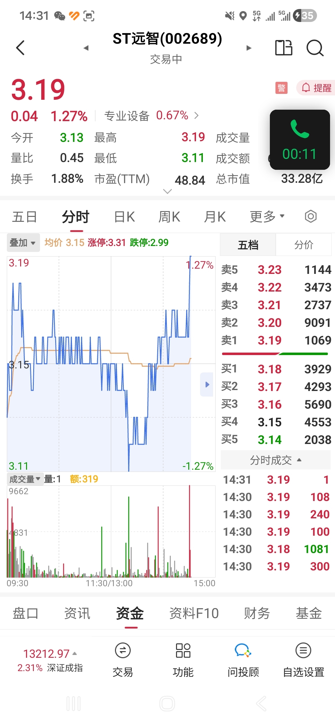 $ST远智(SZ002689)$ 昨天3.19买的,早上挂3.2还未成交。