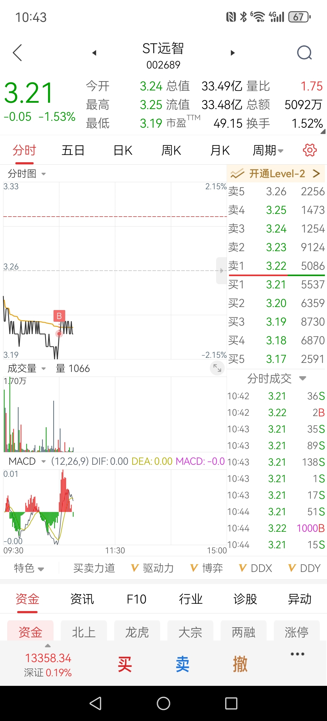 $ST远智(SZ002689)$ 今天3.20买入成交12万股,如果继续下跌继续加仓。