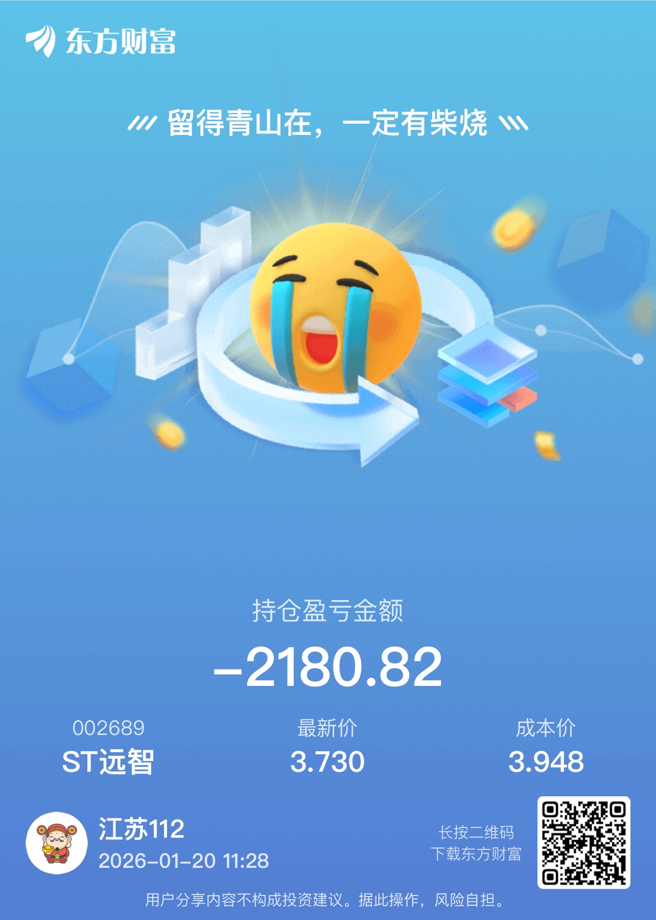 温馨提示: 1.根据《证券法》规定,禁止编造、传播虚假信息或者误导性信息,扰乱证券市场;2.用户在本社区发表的所有资料、言论等仅代表个人观点,与本网站立场无关,不对您构成任何投资建议。用户应基于自己的独立判断,自行决定证券投资并承担相应风险。《东方财富社区管理规定》