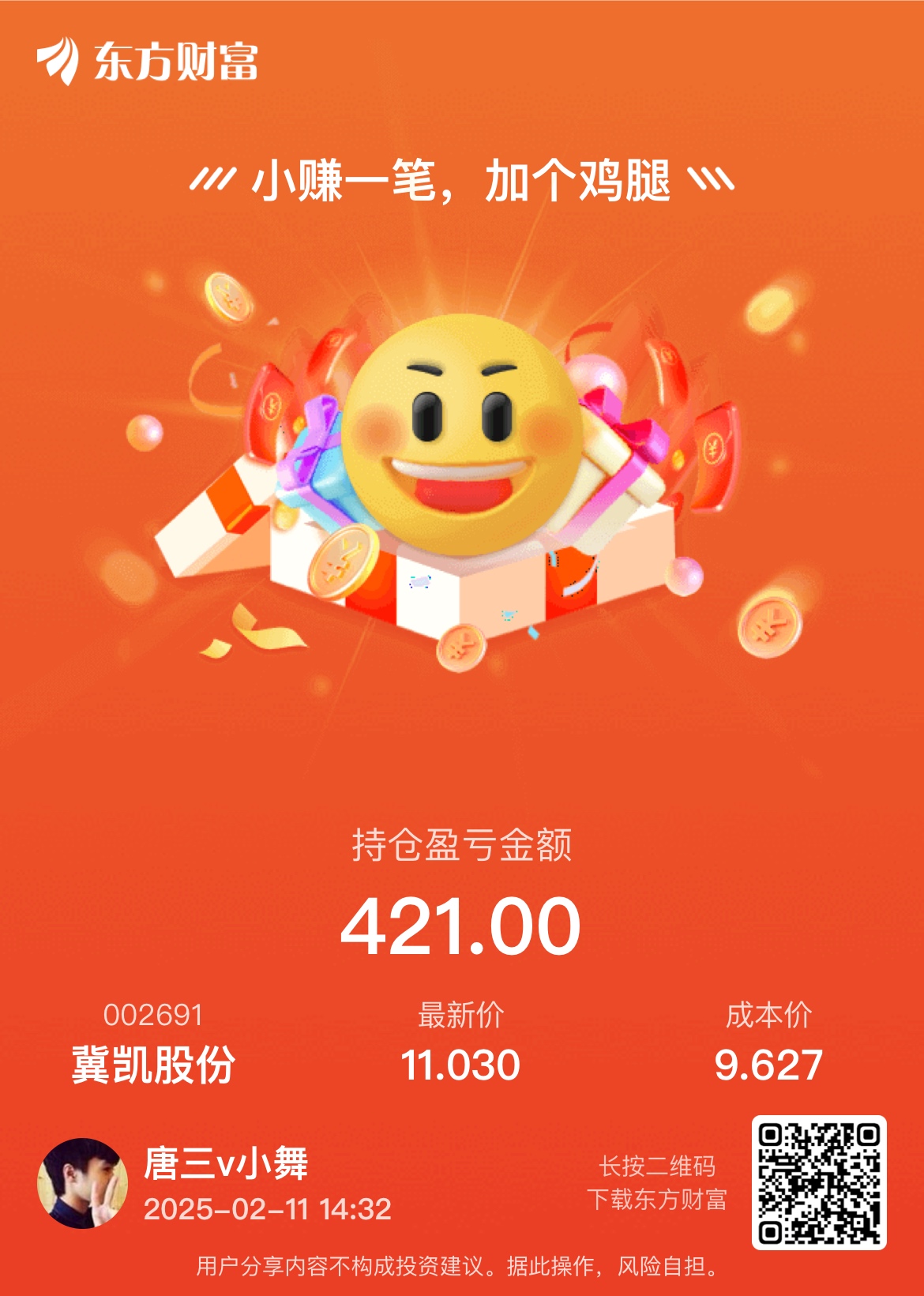 $冀凯股份(SZ002691)$ 买了3手