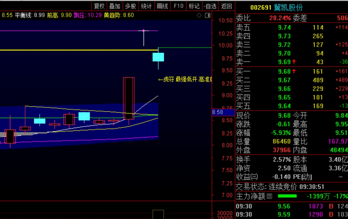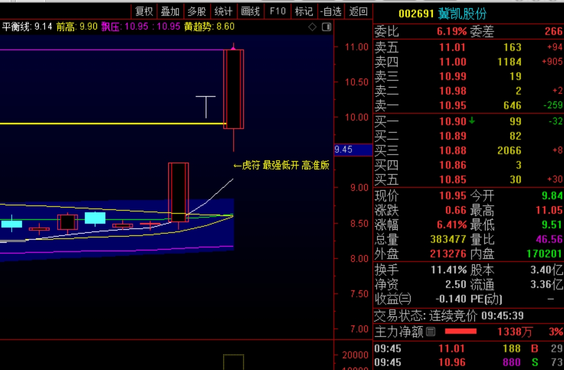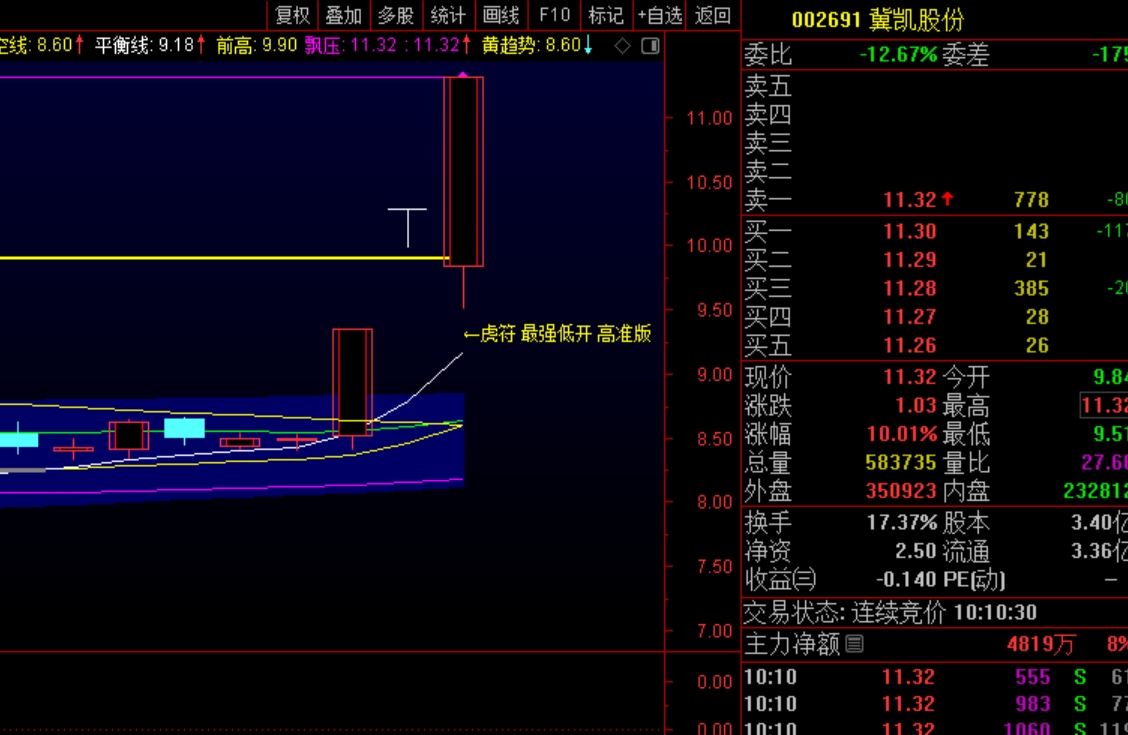 冀凯股份在开盘价到开盘价以下,快速打压的时候埋伏,具体看分时,不要追高