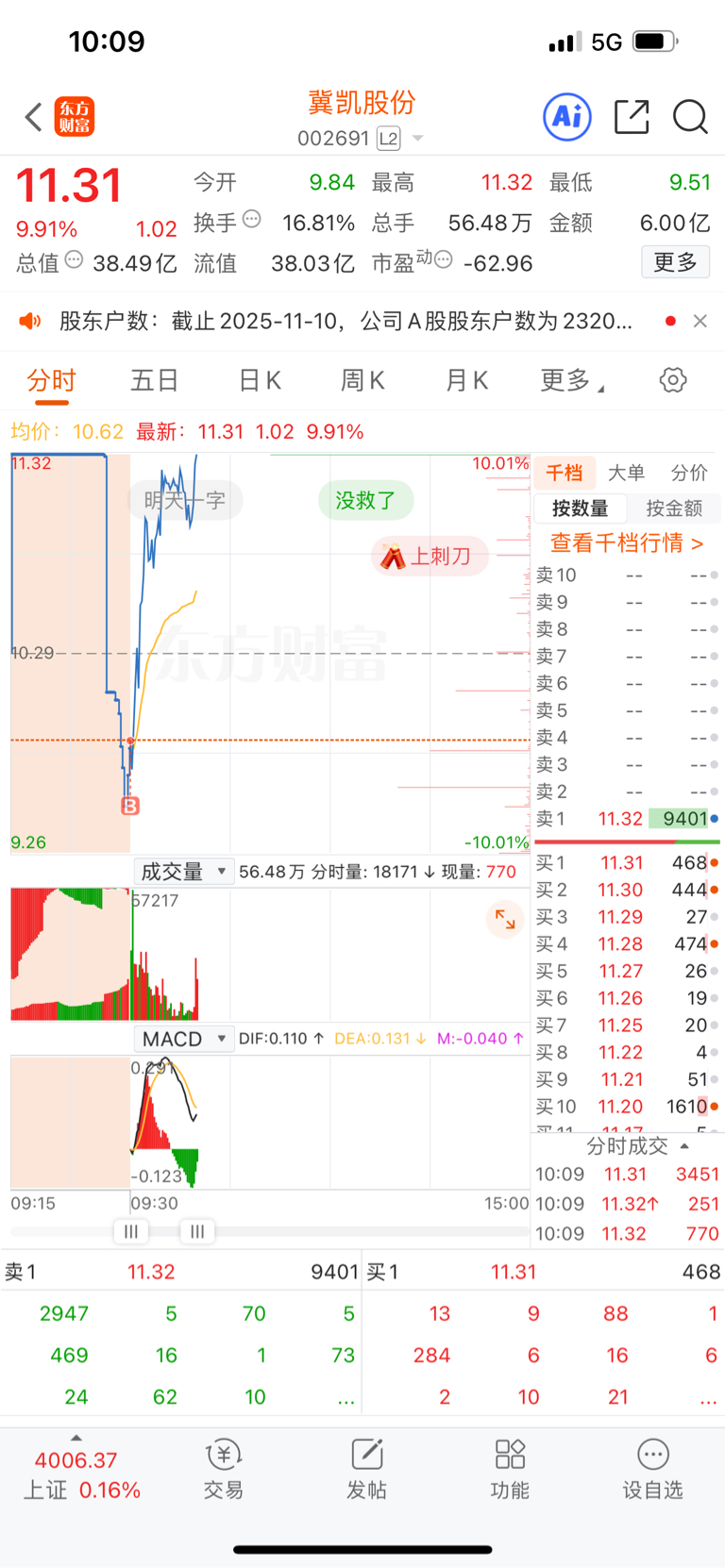$冀凯股份(SZ002691)$ 看不懂这种票的走势