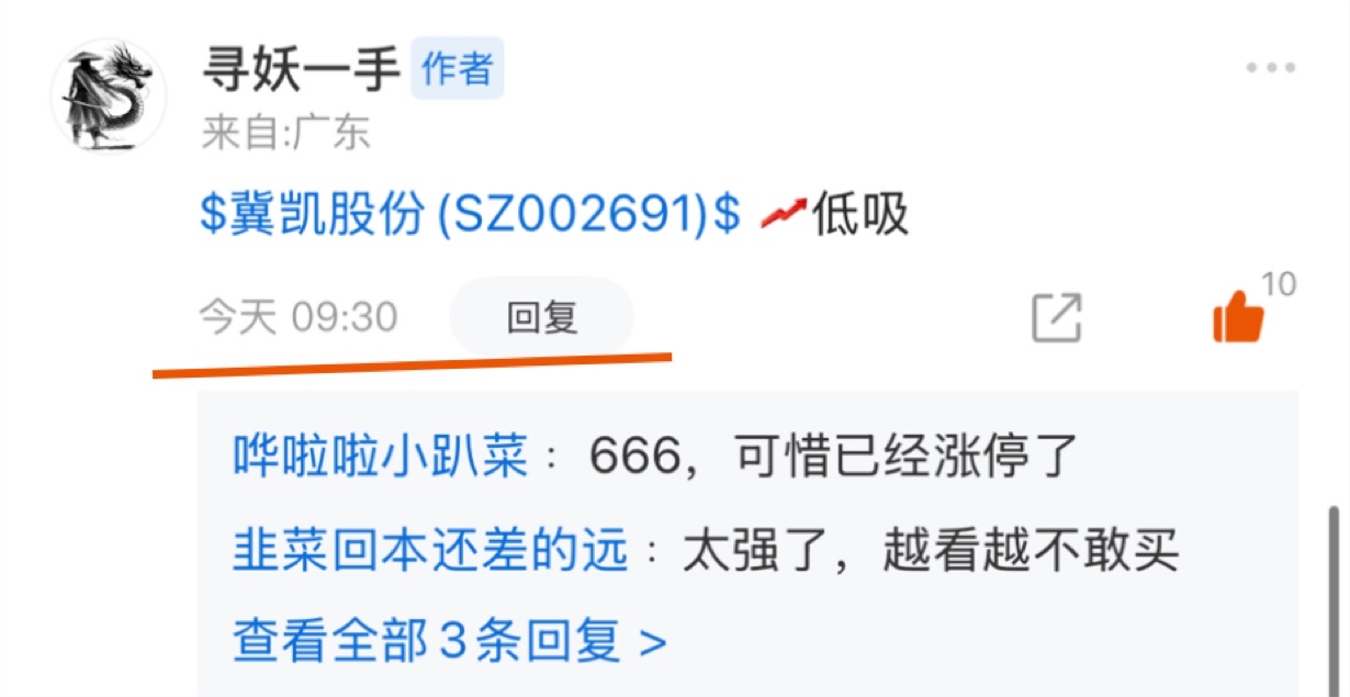 掌声在哪里!!虽然今天是入住平台的第三天但蜜桃是天天吃啊~今天共吃4只板板~而且还是马前炮!这样的宝藏博主不值得你点个关注加个小红心吗~$冀凯股份(SZ002691)$ 低吸介入日内拿下14斤蜜桃!